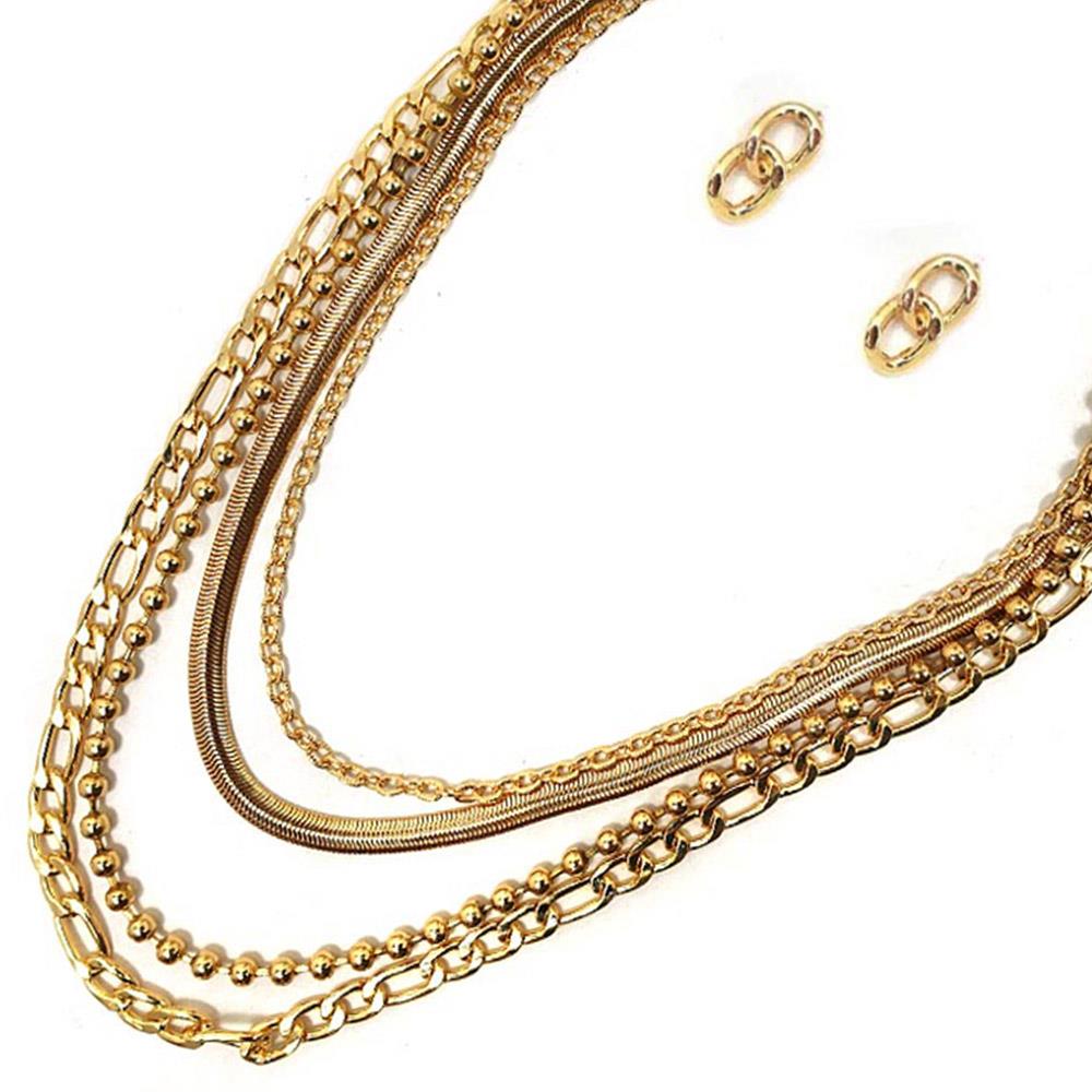 TEXTURED METAL LAYERED MULTI CHAIN NECKLACE EARRING SET