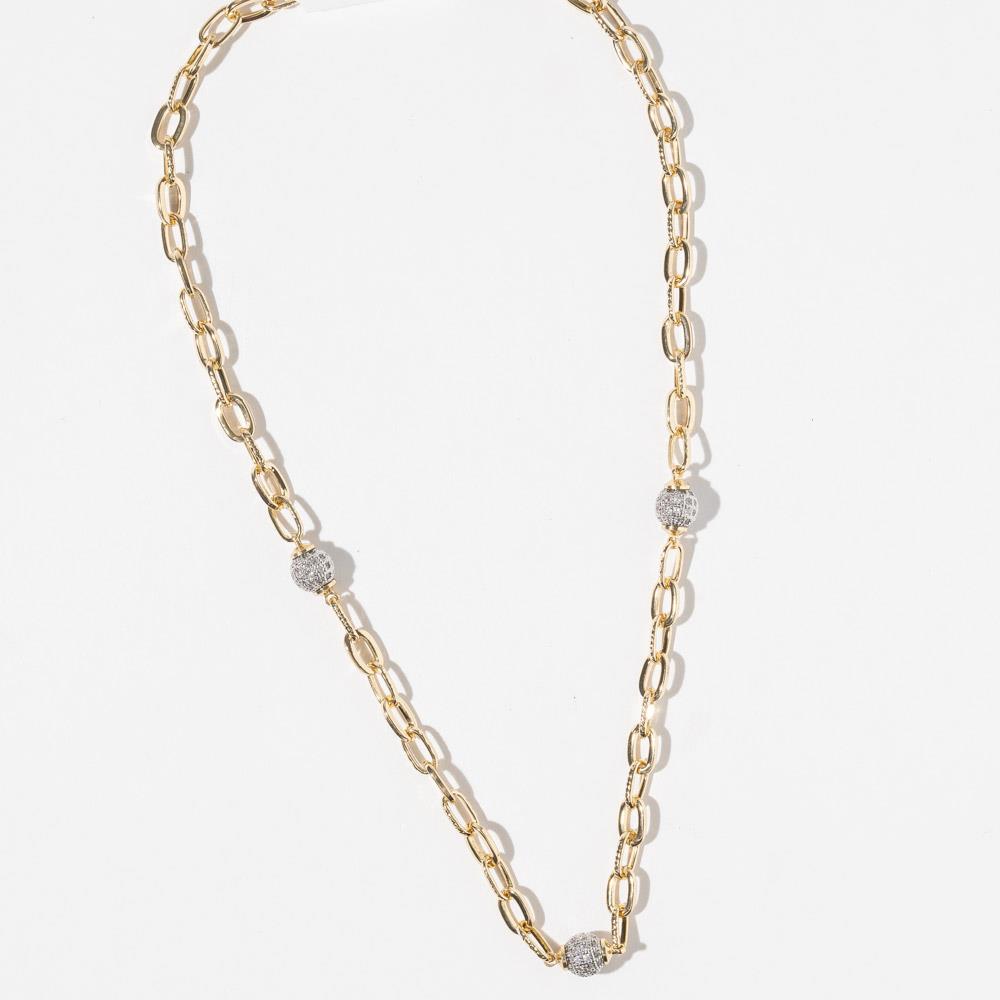 GOLD DIPPED CZ BALL STATION CHAIN NECKLACE