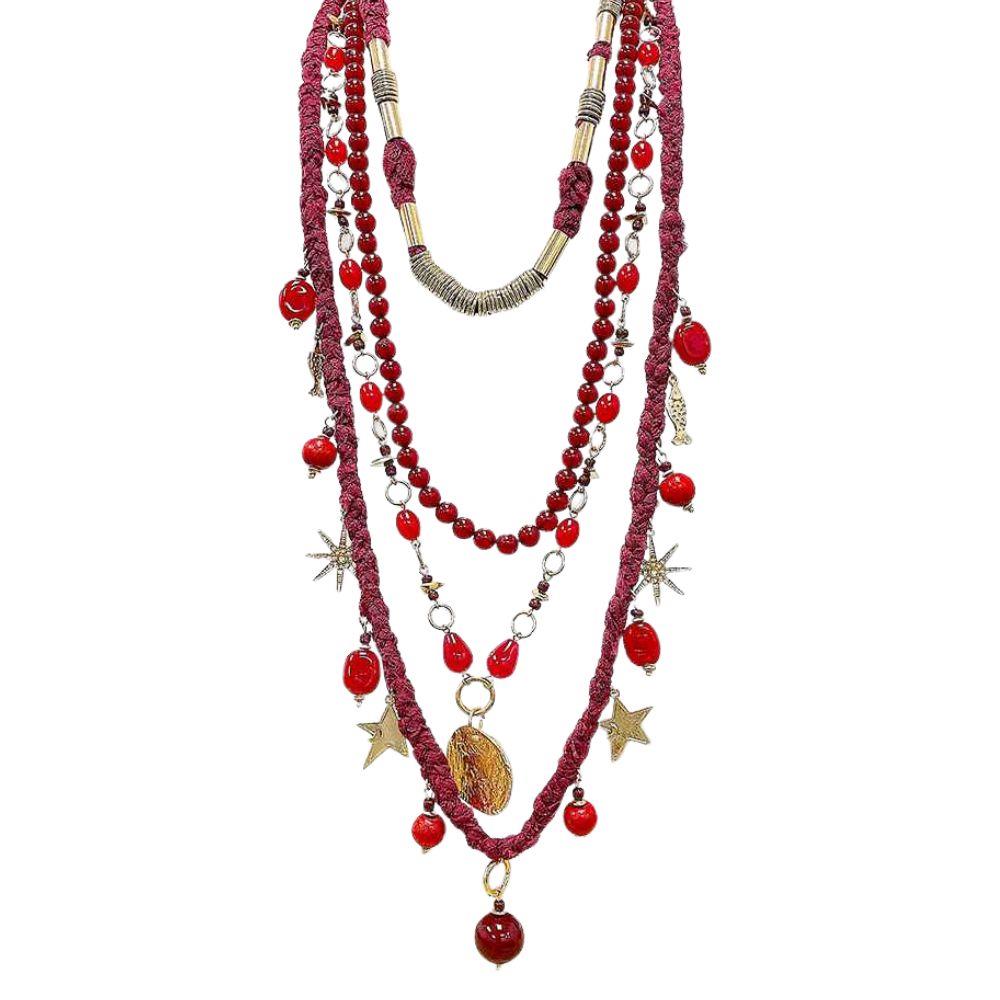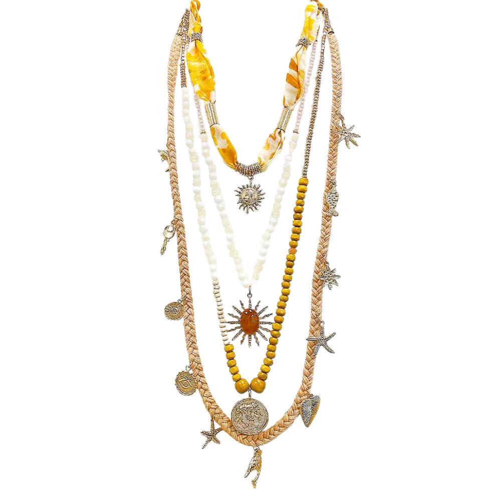 MULTI CHARM BEADED BRAIDED LINK LAYERED NECKLACE