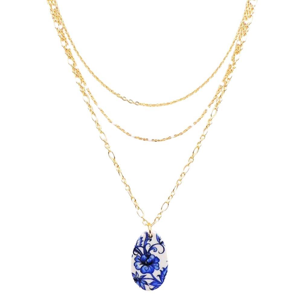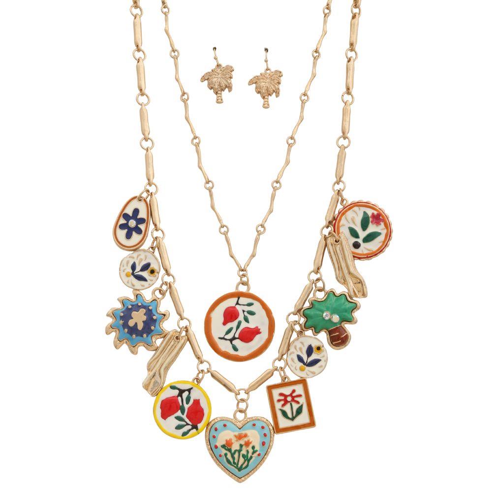 CERAMIC PATTERN MULTI CHARM LAYERED NECKLACE