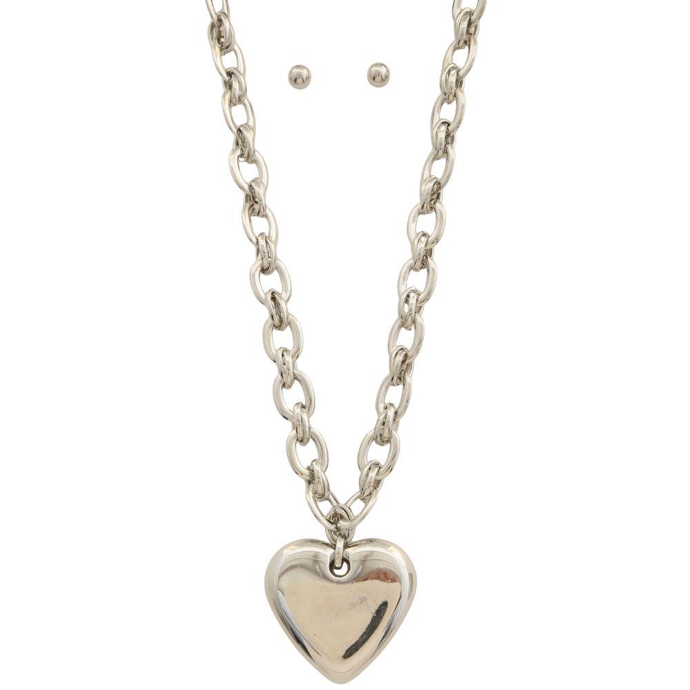 PUFFY HEART PENDANT CIRCLE LINK METAL NECKLACE