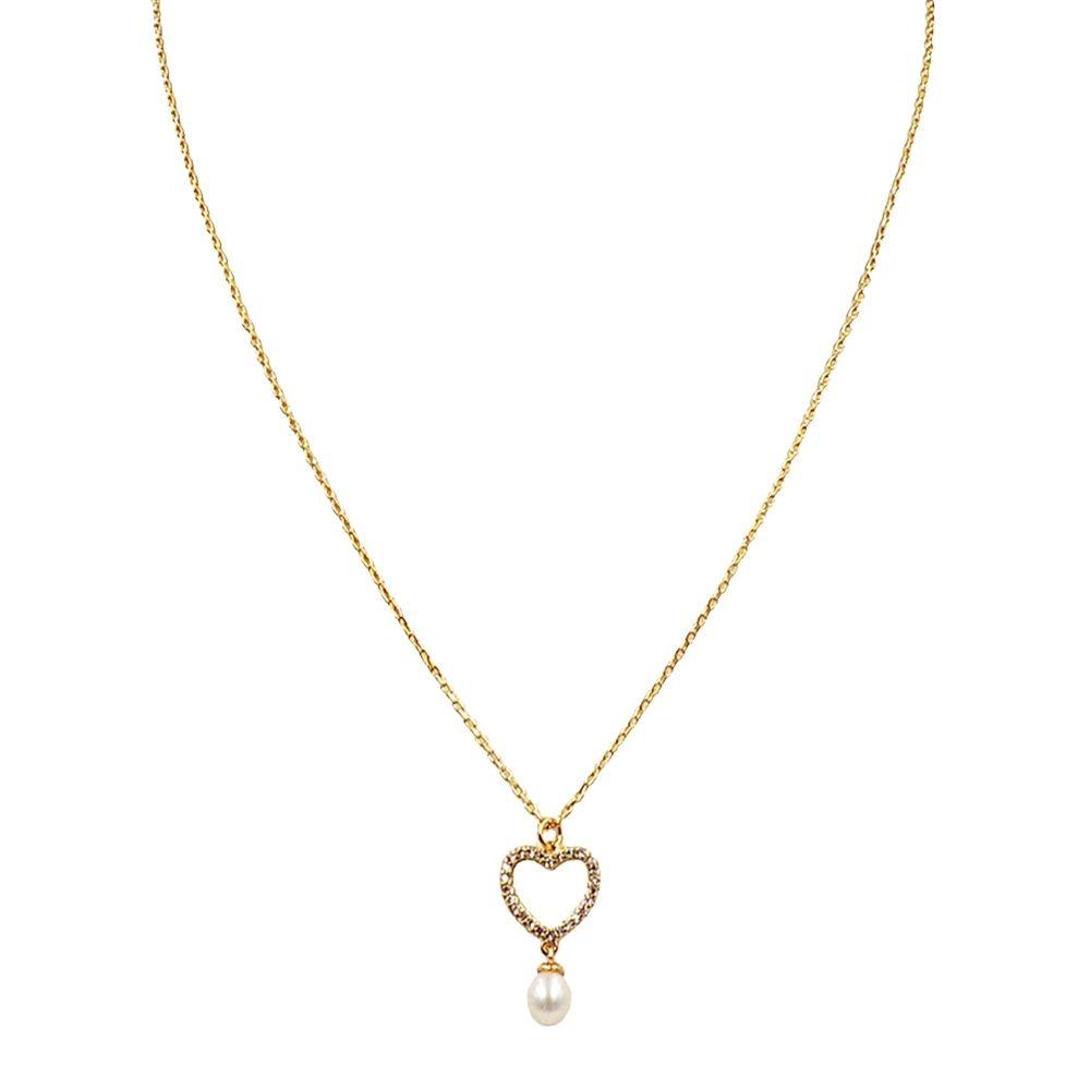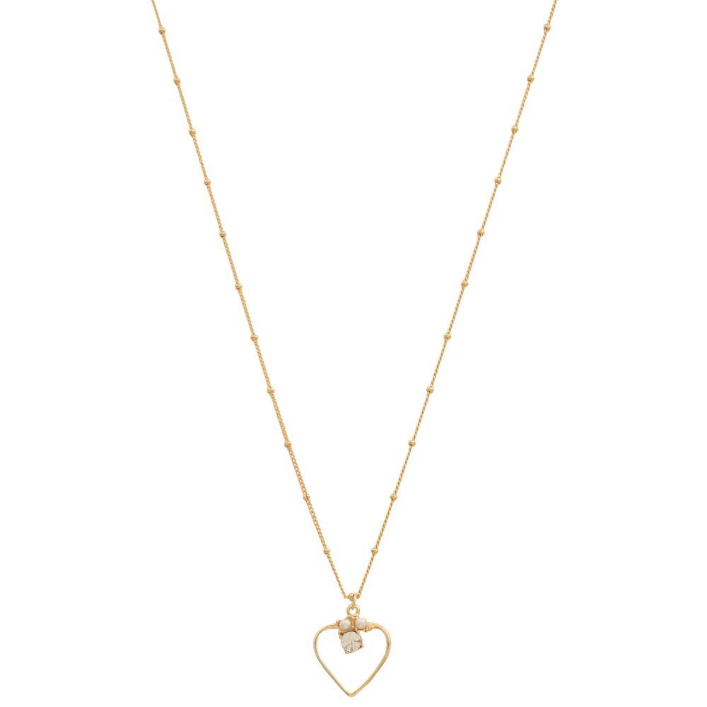 SODAJO CUT OUT HEART CHARM CRYSTAL PEARL BEAD GOLD DIPPED NECKLACE