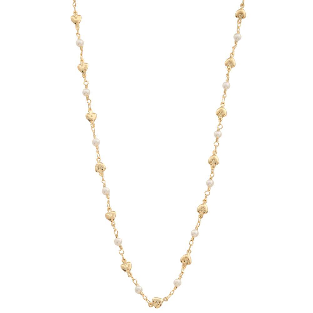SODAJO DAINTY HEART CHARM PEARL BEAD GOLD DIPPED NECKLACE