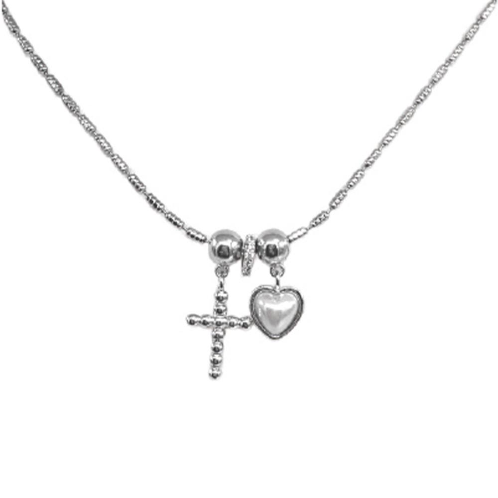 18K BRASS HEART AND CROSS CHARM NECKLACE