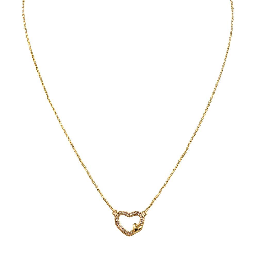 18K BRASS RHINESTONE HEART PENDANT NECKLACE