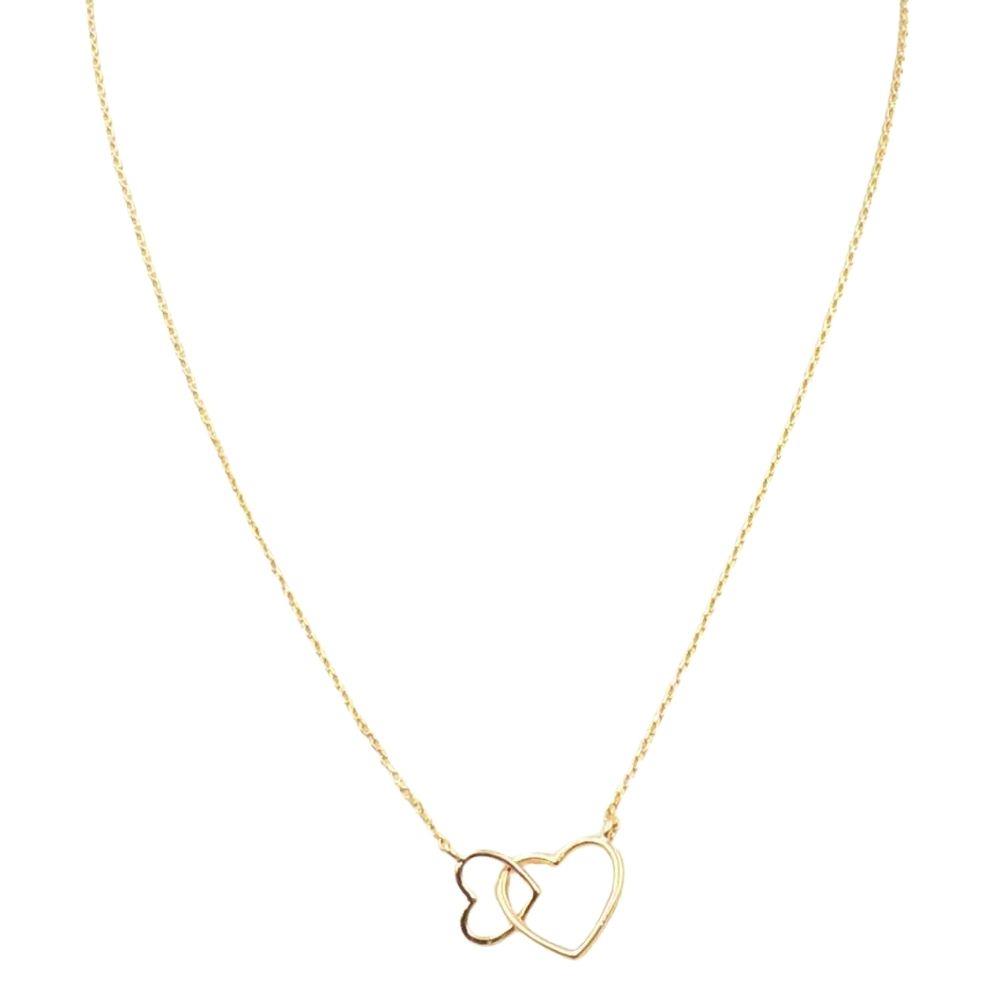 18K BRASS DOUBLE HEART PENDANT NECKLACE