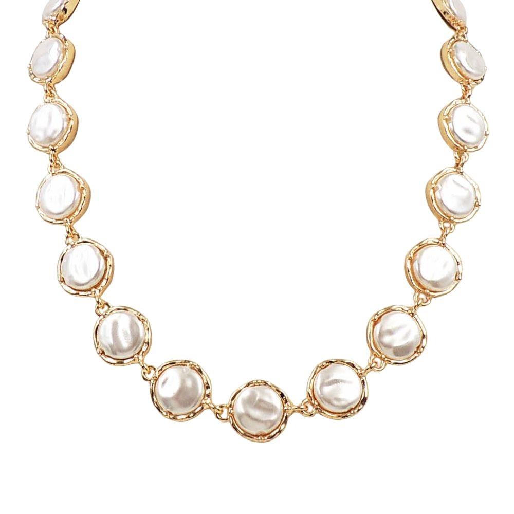 SODAJO PEARL BEAD OVAL METAL GOLD DIPPED NECKLACE