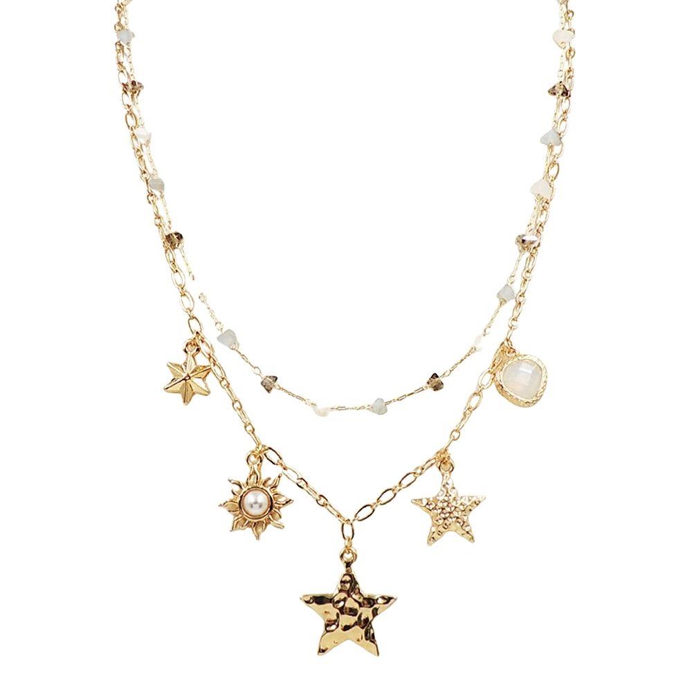 SODAJO DAINTY BEAD LAYERED GOLD DIPPED NECKLACE