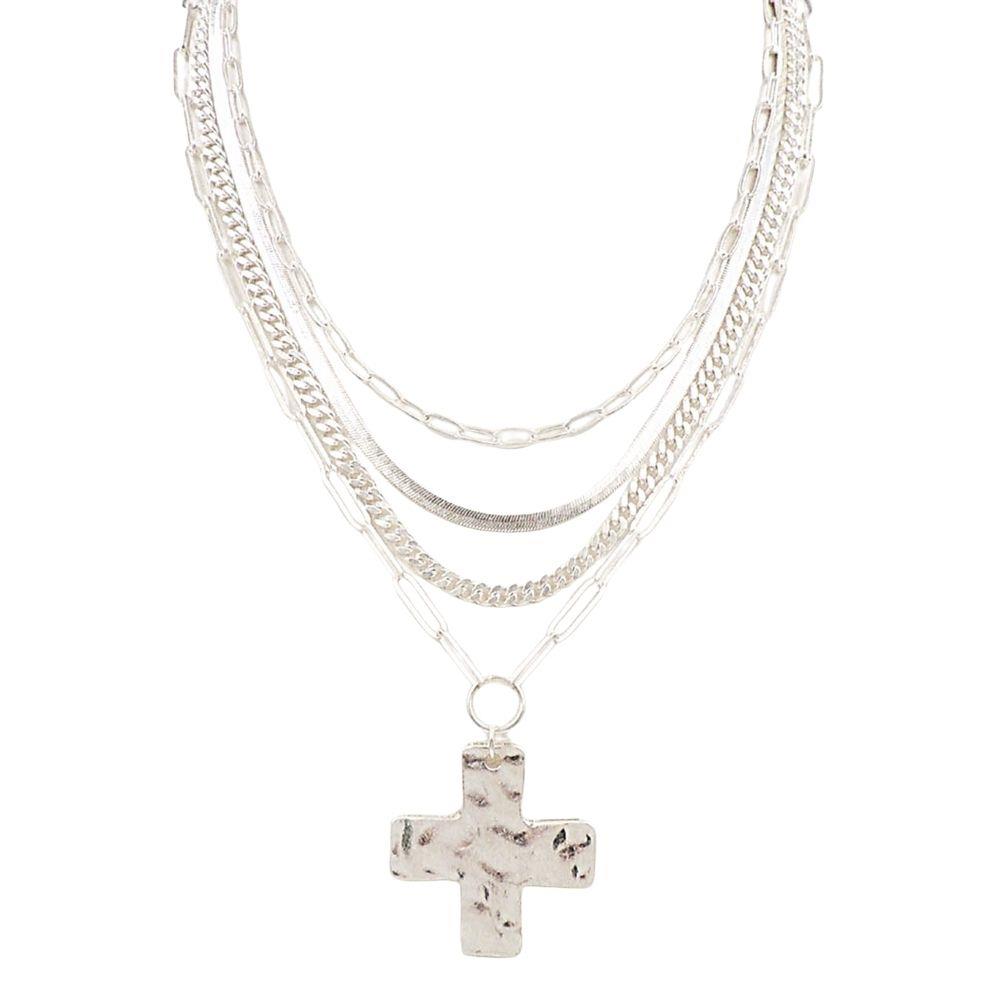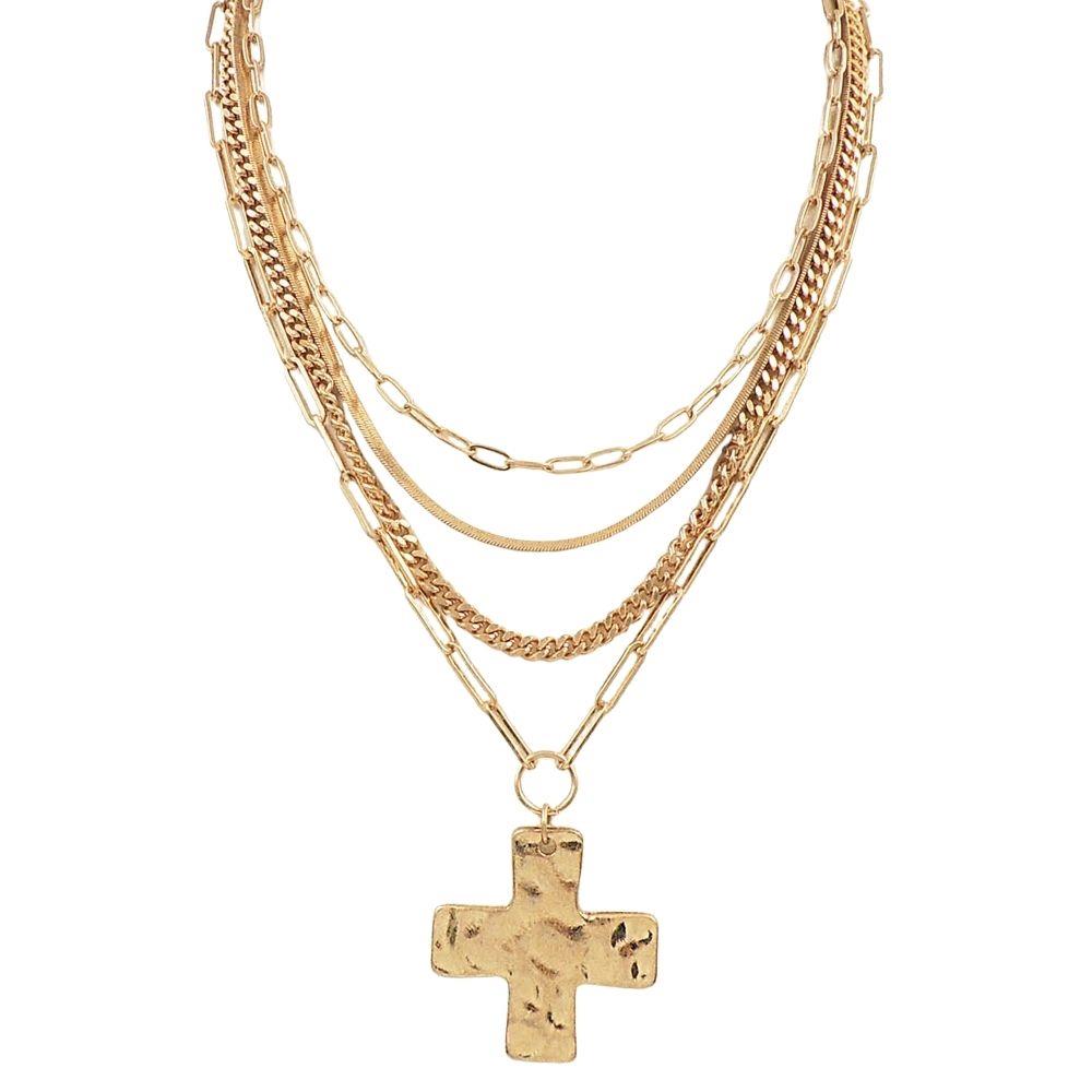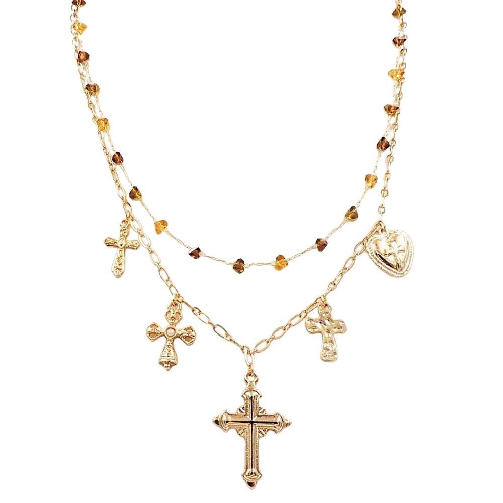 BEADED CROSS MULTI CHARM LAYERED NECKLACE