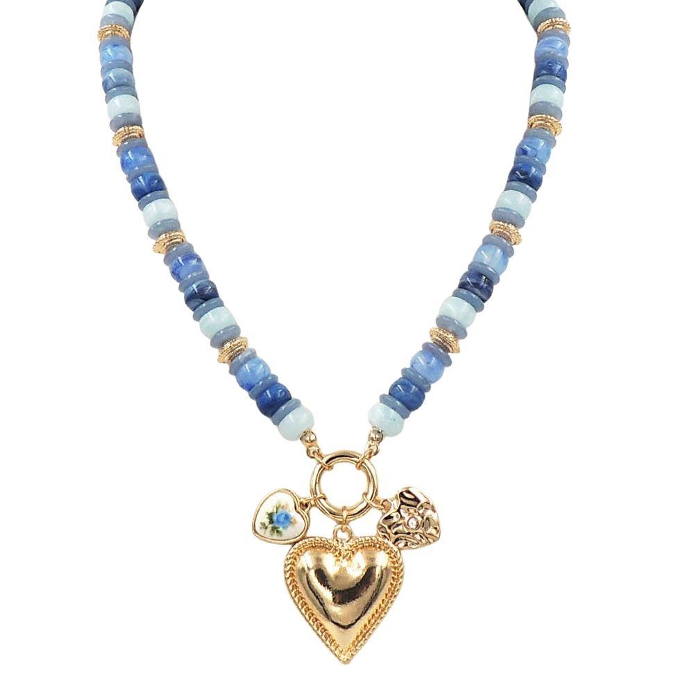 PUFFY HEART ORGANIC BEAD TOGGLE CLASP NECKLACE