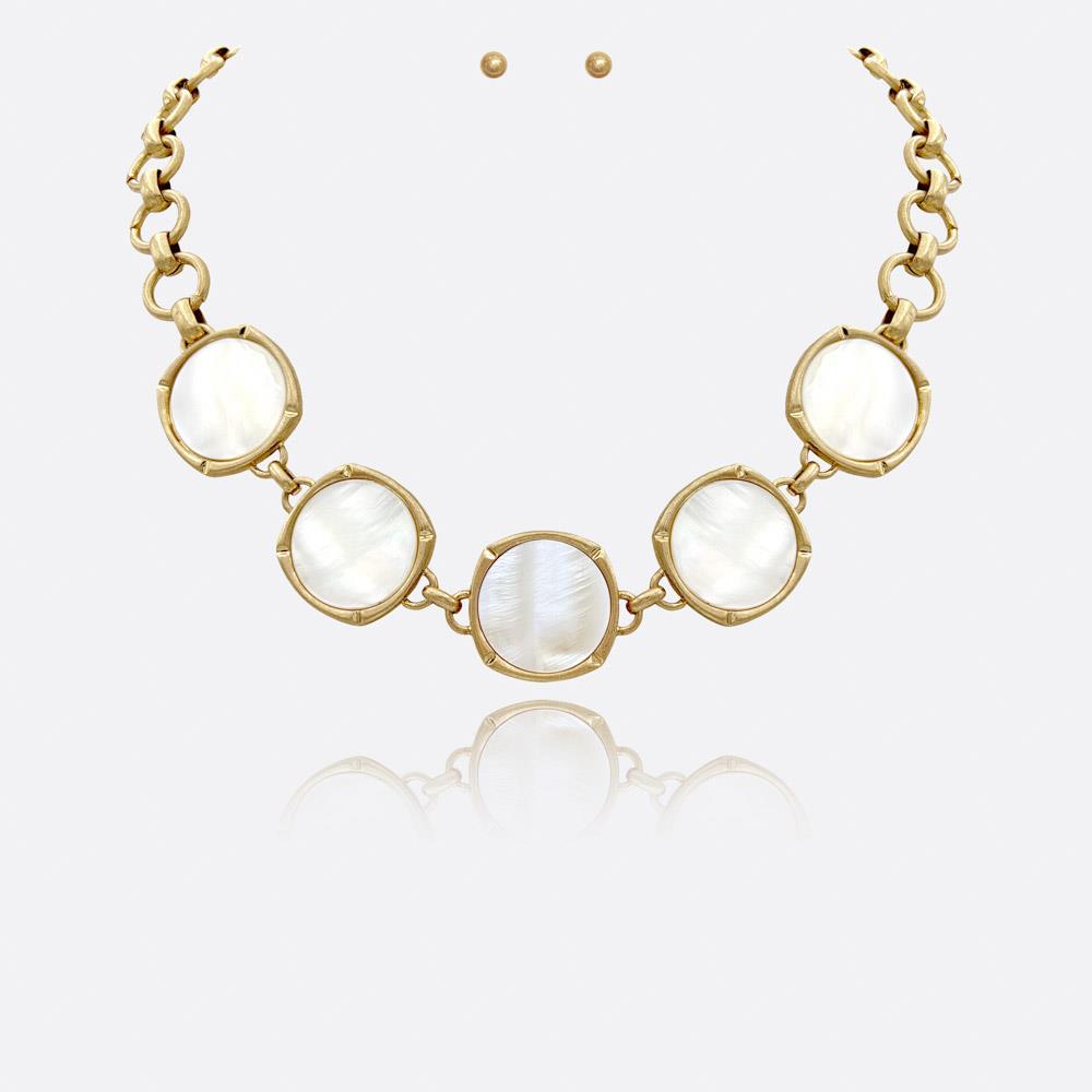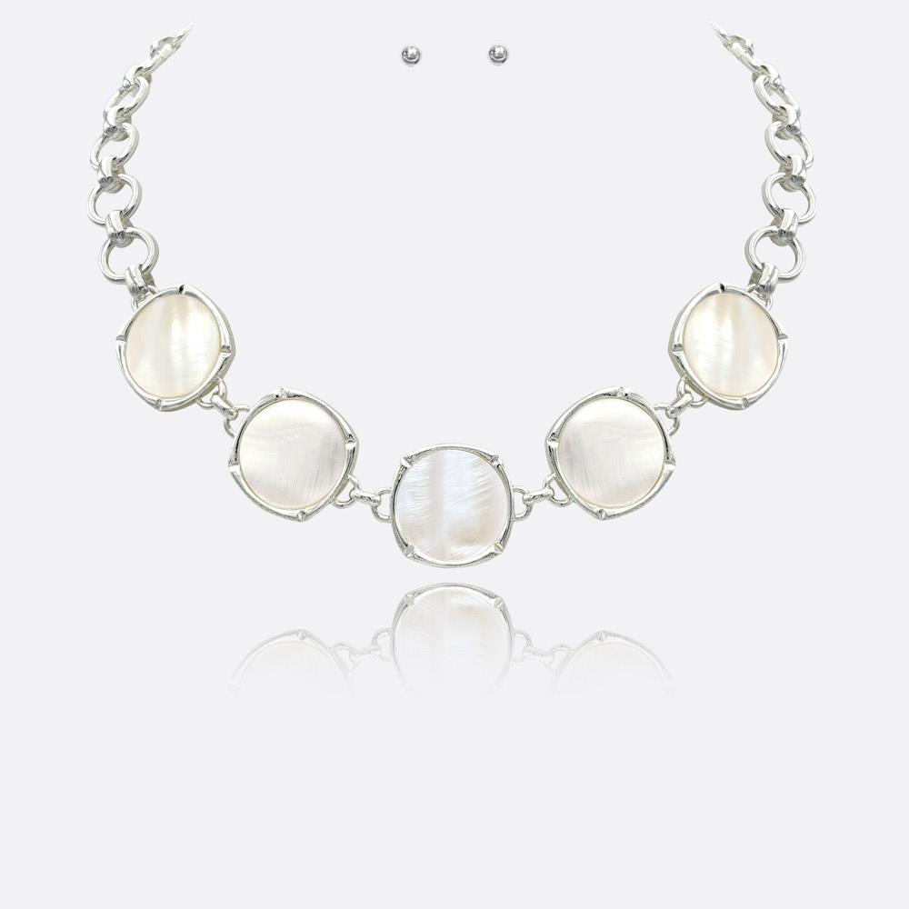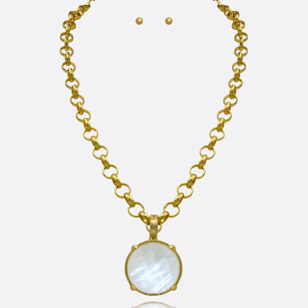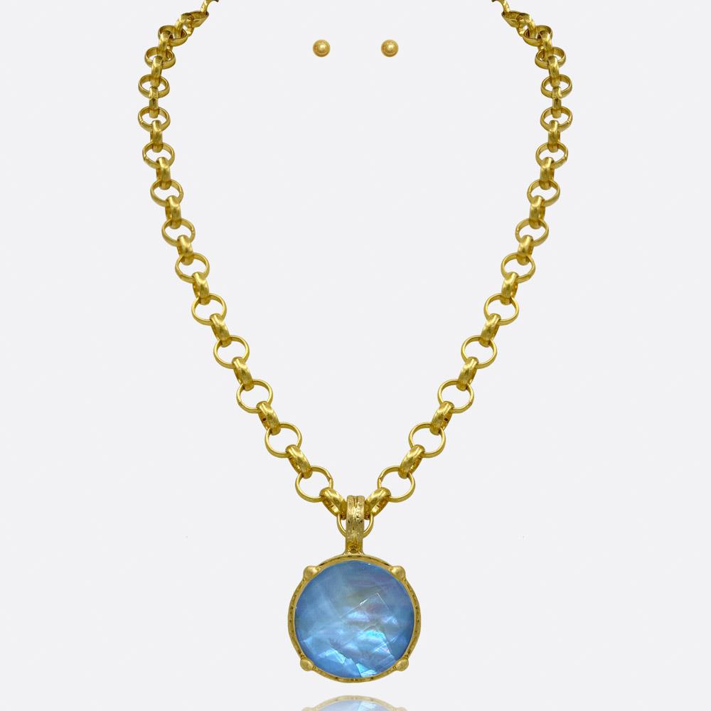 ROUND STONE PENDANT CHAIN NECKLACE EARRING SET