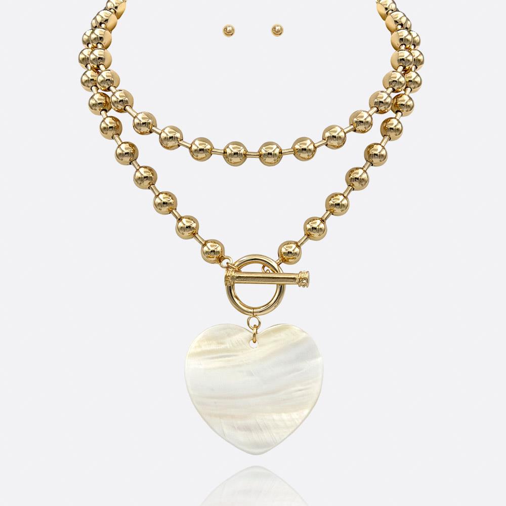 HEART MOP PENDANT WITH TOGGLE NECKLACE