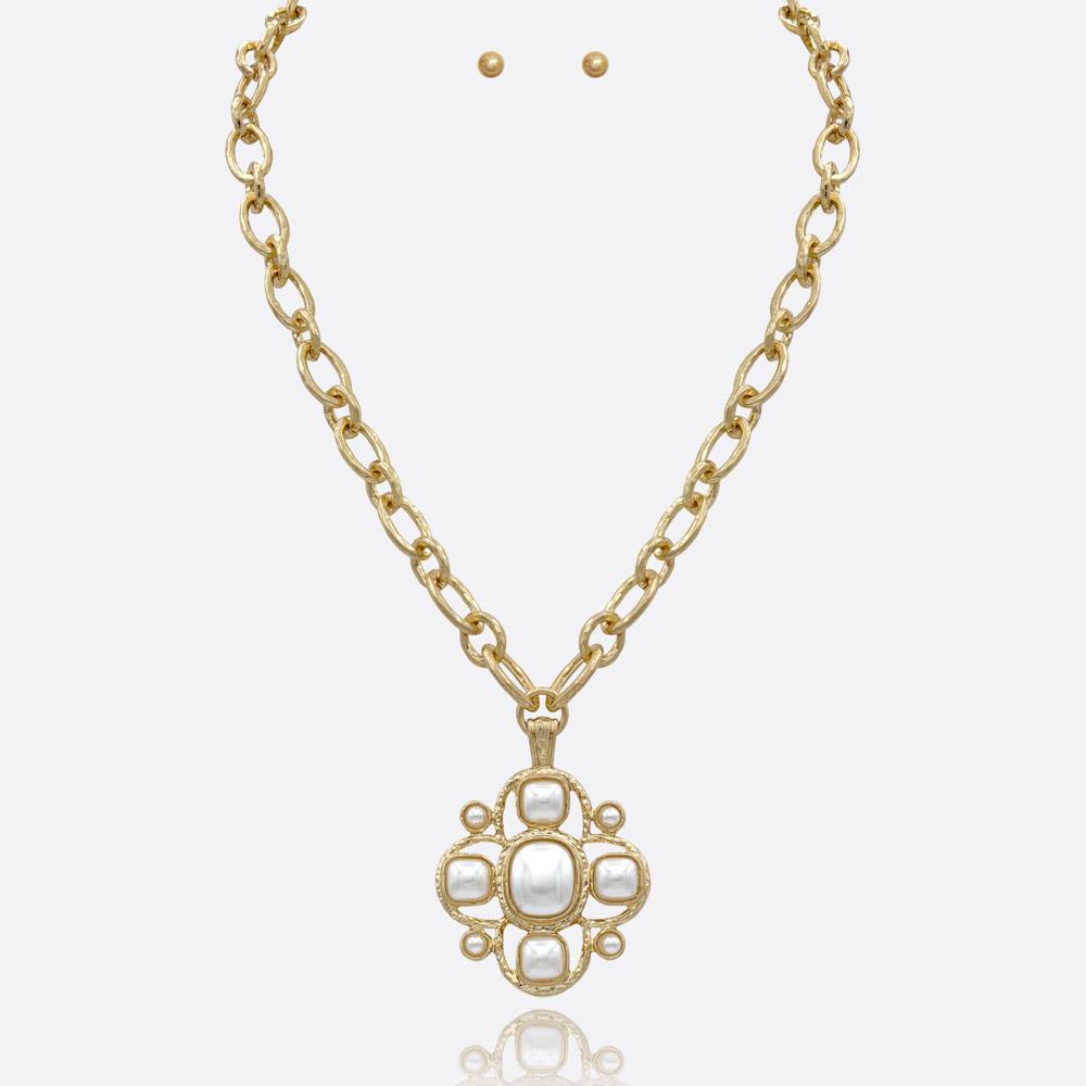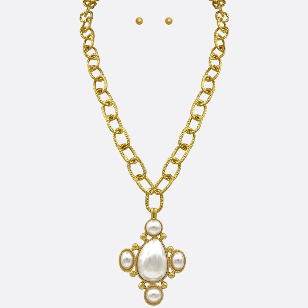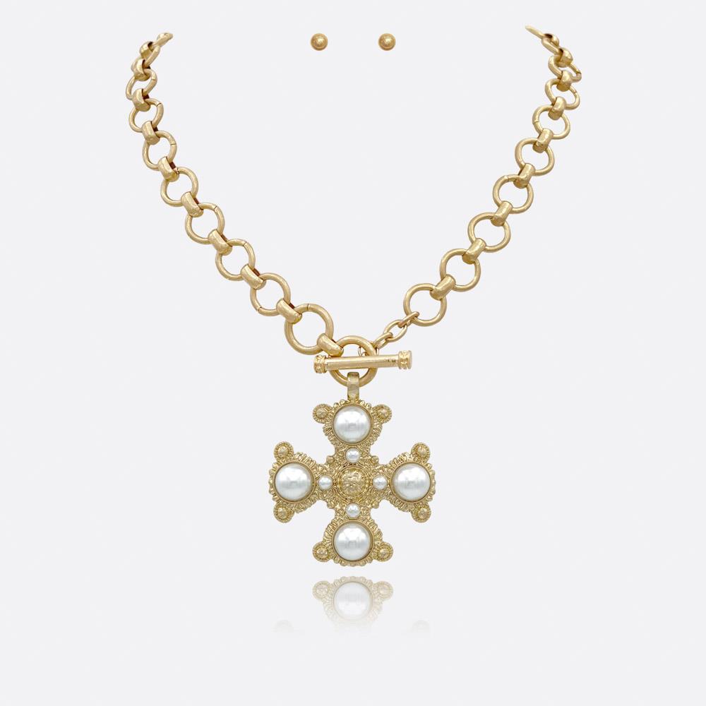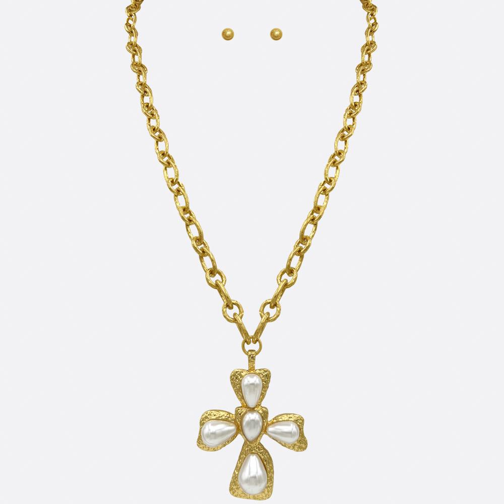 PEARL CROSS PENDANT CHAIN NECKLACE EARRING SET