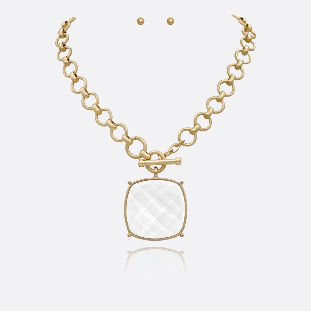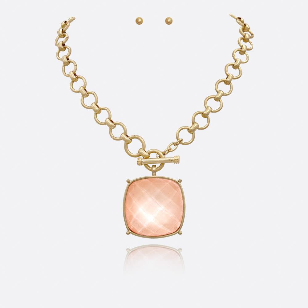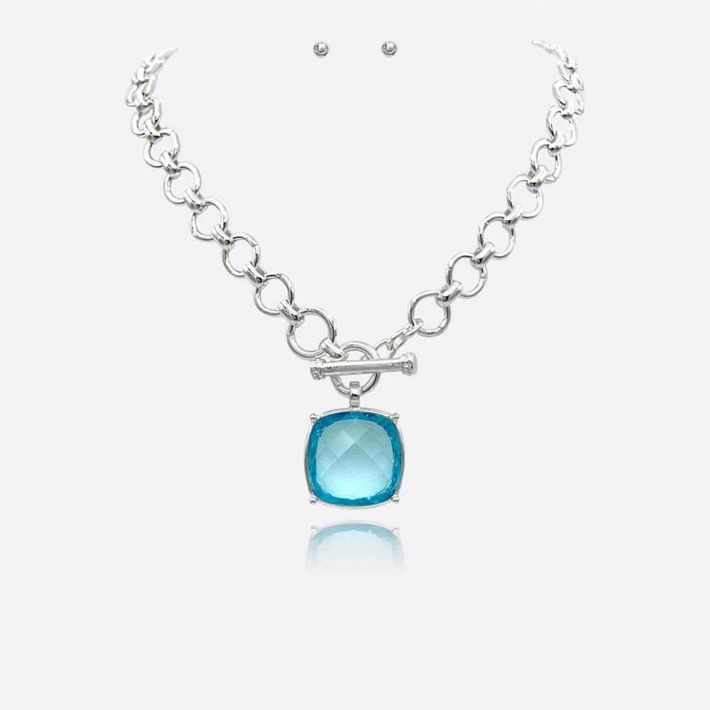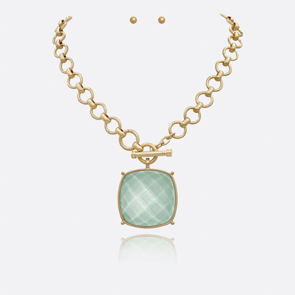 SQUARE STONE PENDANT CHAIN NECKLACE EARRING SET