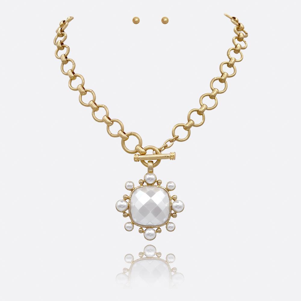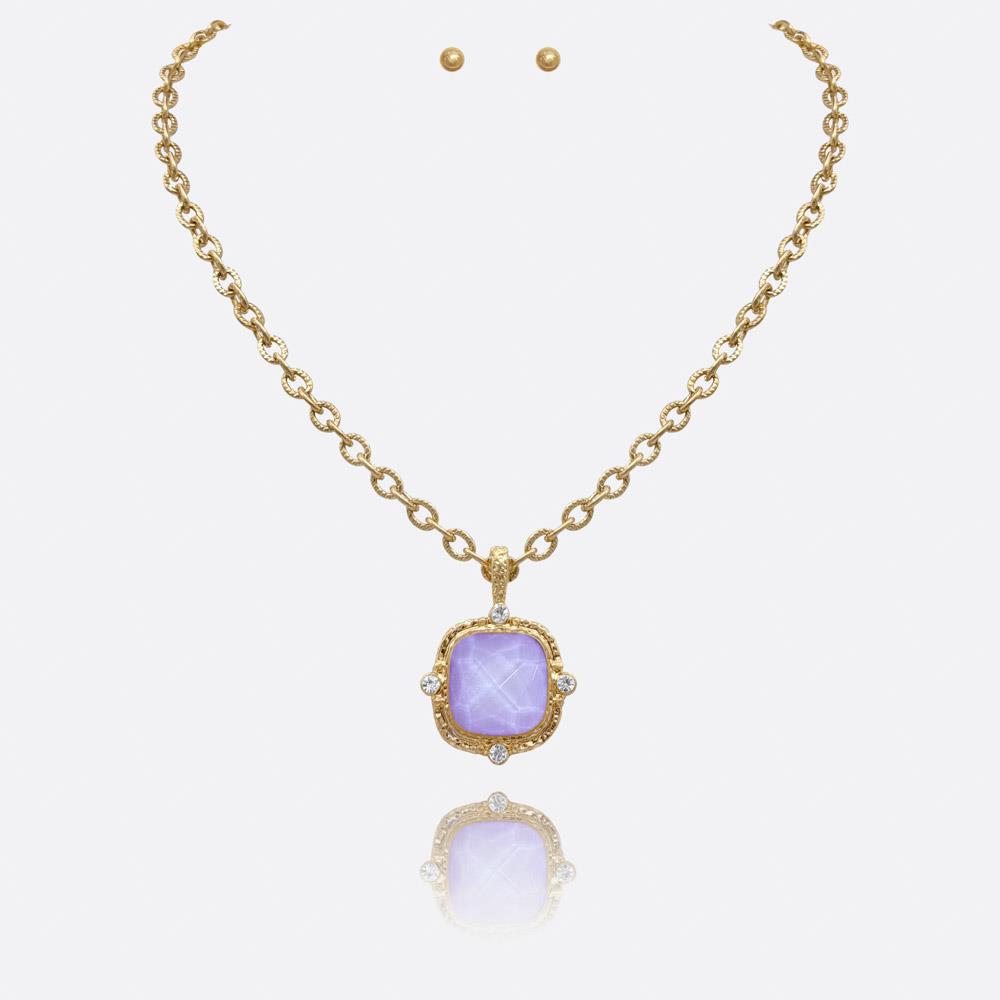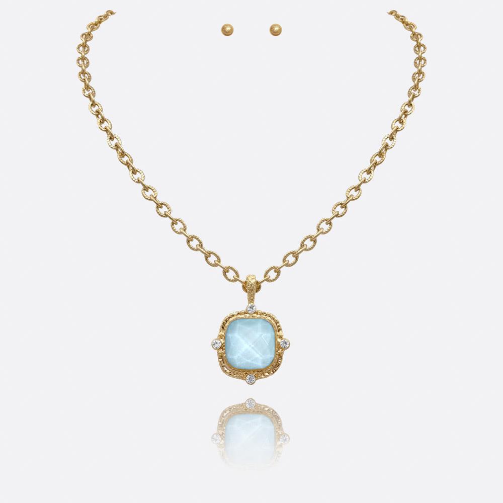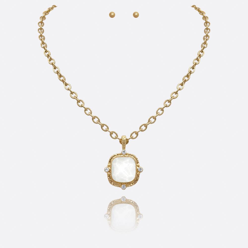 SQUARE STONE PENDANT CHAIN NECKLACE EARRING SET