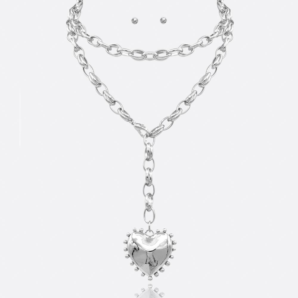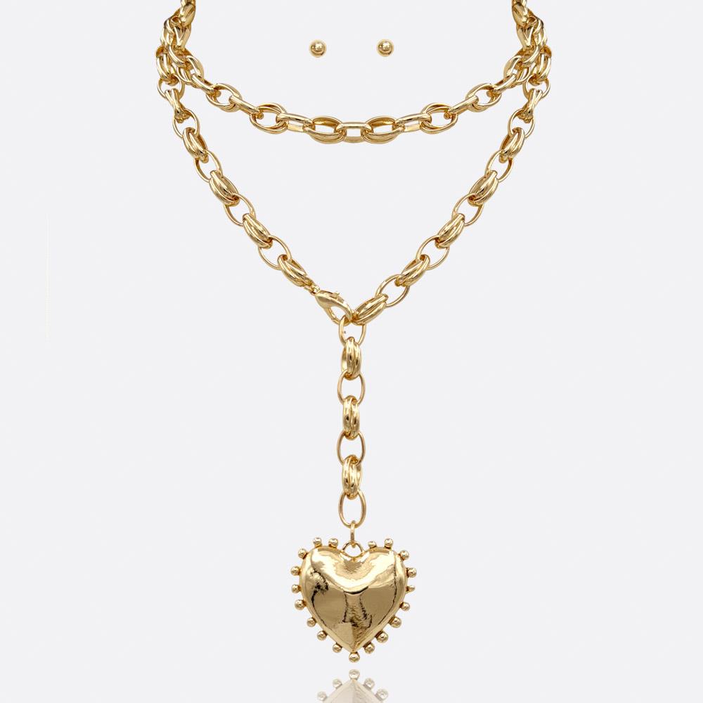 HEART LOCKET PENDANT LAYERED CHAIN Y NECKLACE EARRING SET