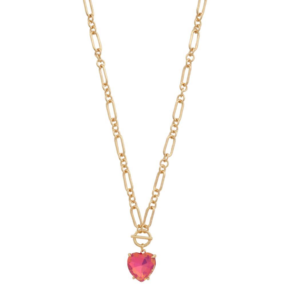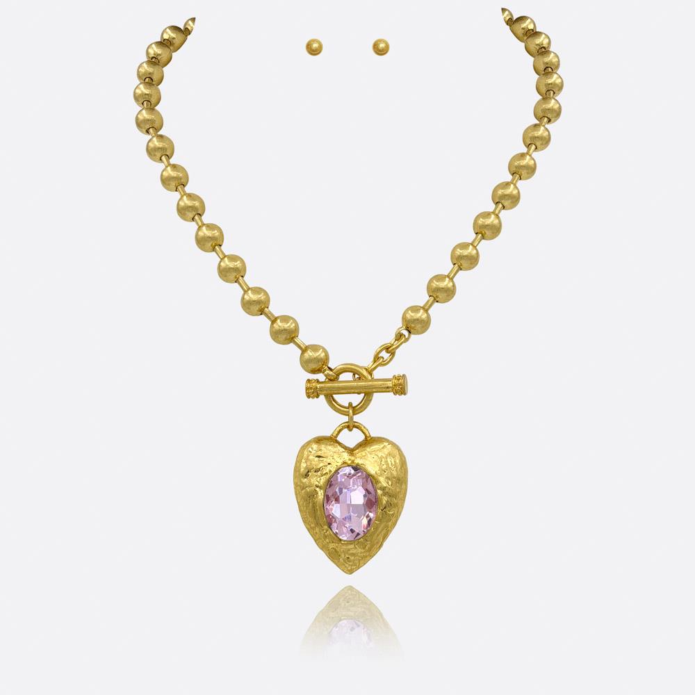 HEART CRYSTAL PENDANT TOGGLE CLASP METAL NECKLACE