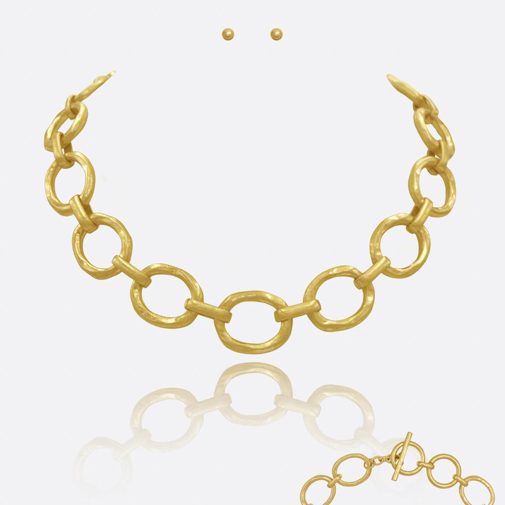 ROUND LINK TOGGLE CHAIN NECKLACE EARRING SET
