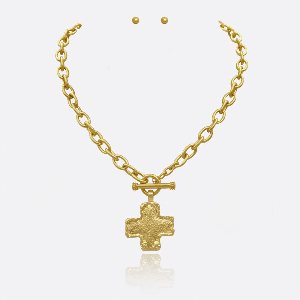 CROSS PENDANT CHAIN NECKLACE EARRING SET