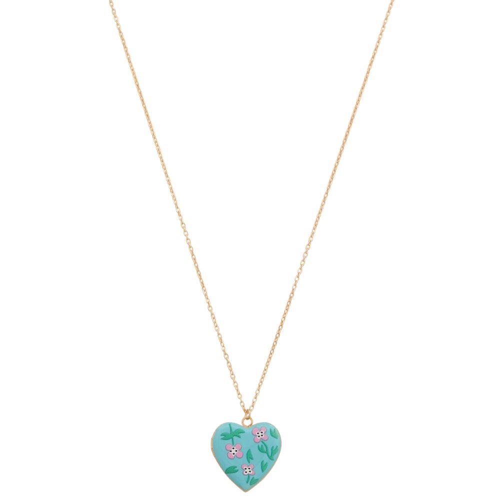 FLOWER PATTERN HEART CHARM LOCKET NECKLACE