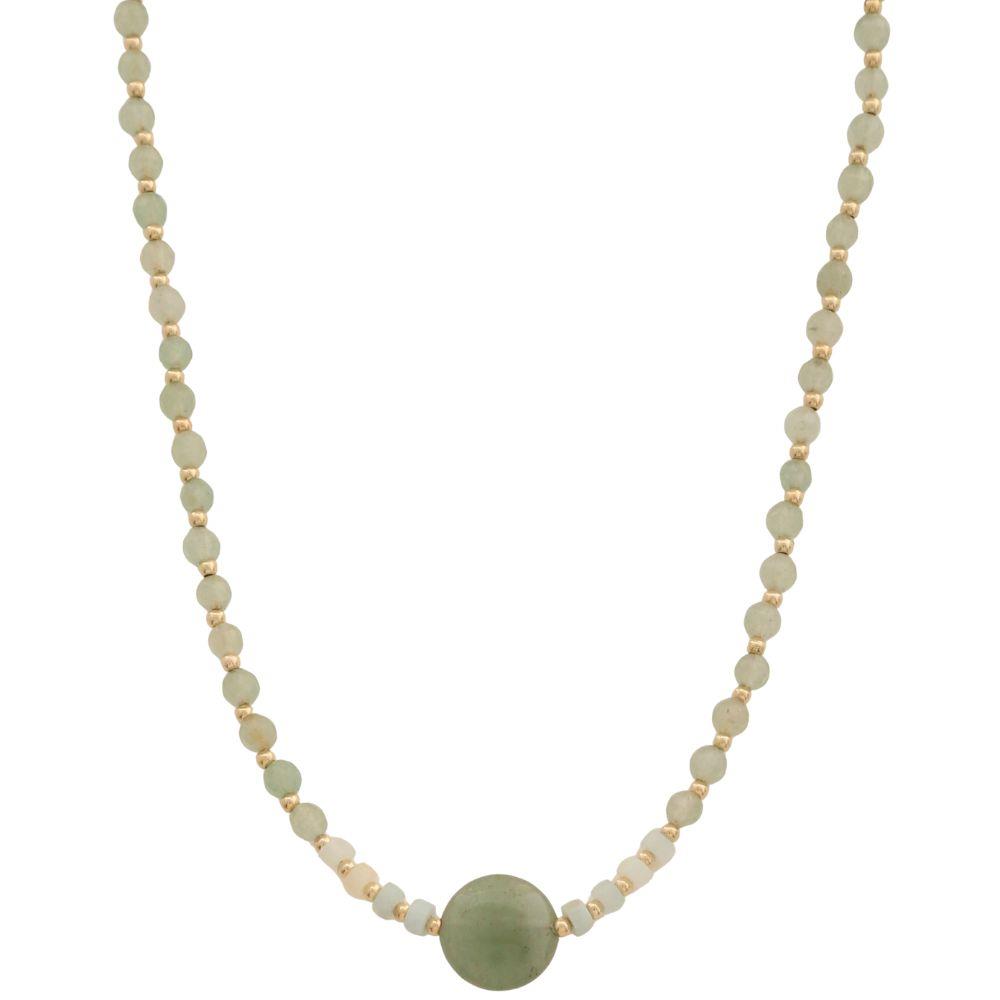 NATURAL STONE METAL BEAD MIX NECKLACE