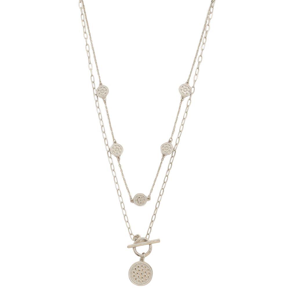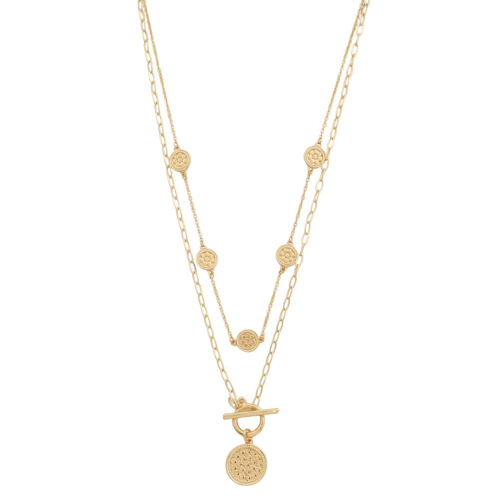 COIN CHARM TOGGLE CLASP LAYERED METAL NECKLACE