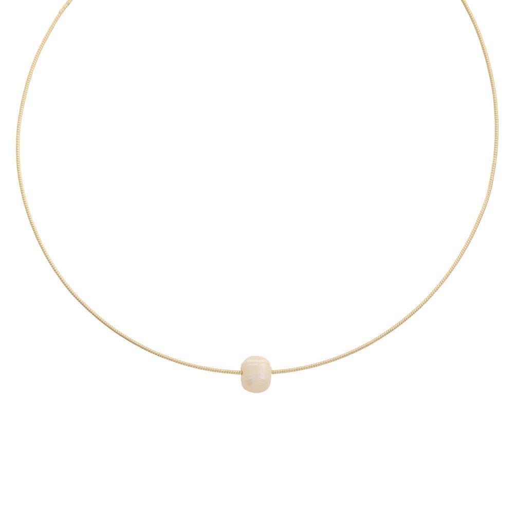 OVAL TEXTURED CCB 5MM PEARL SHORT NECKLACE