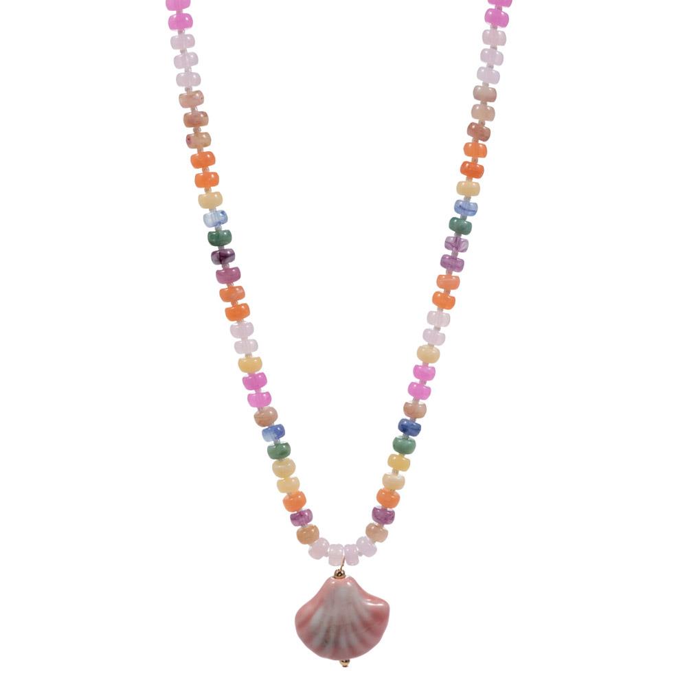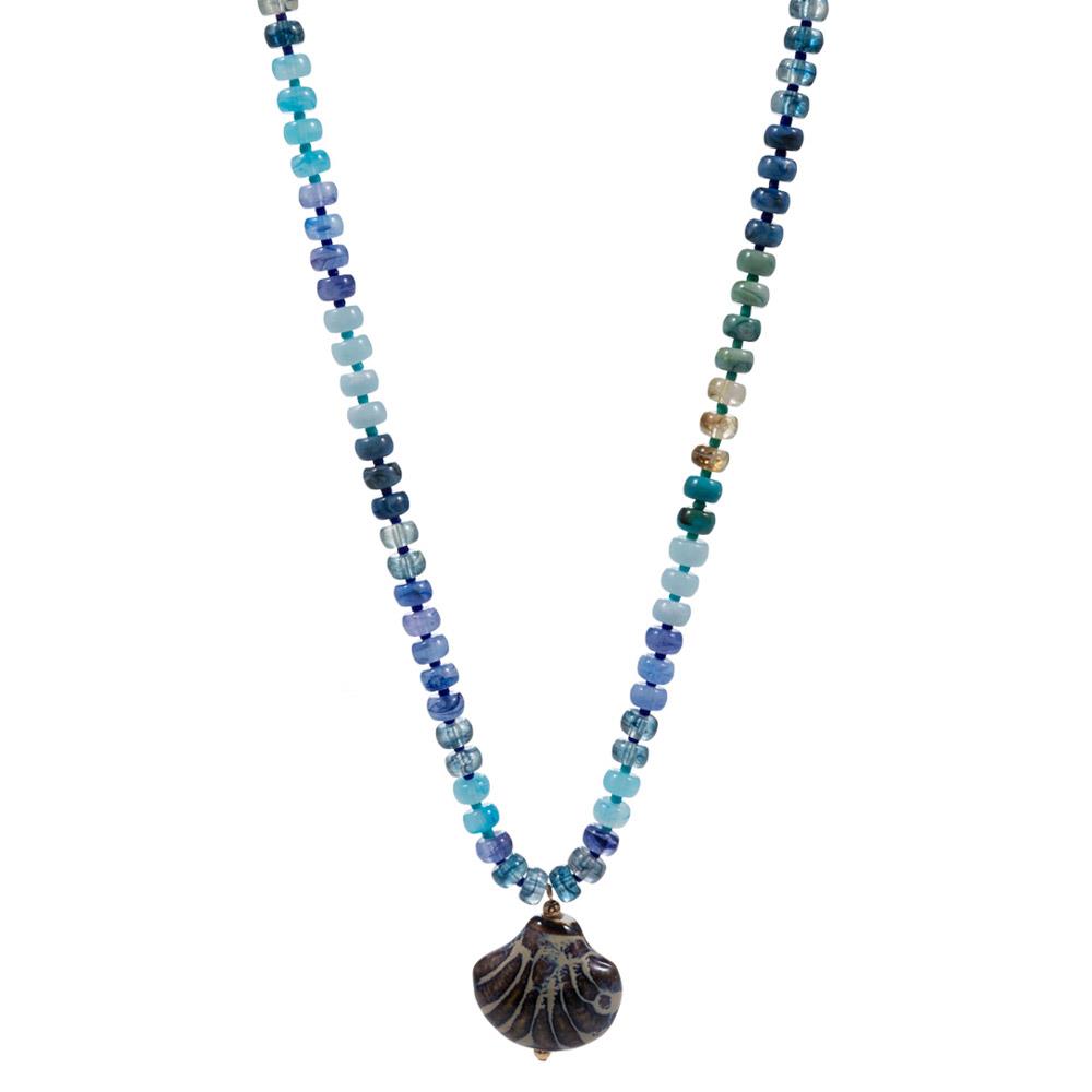 SHELL SHAPED CERAMIC CHARM W/ RESIN BEADED NECKLACE