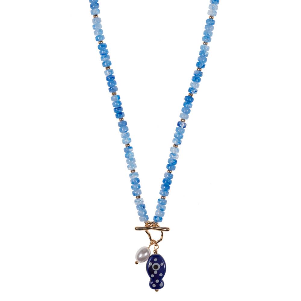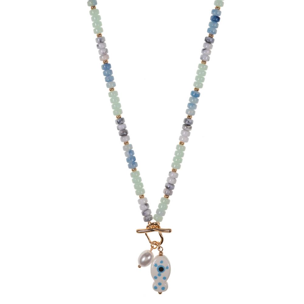 CREAMIC FISH  PENDANT  TOGGLE BEADED NECKLACE