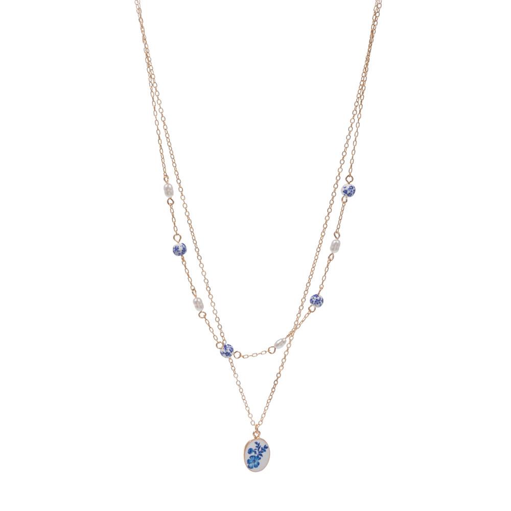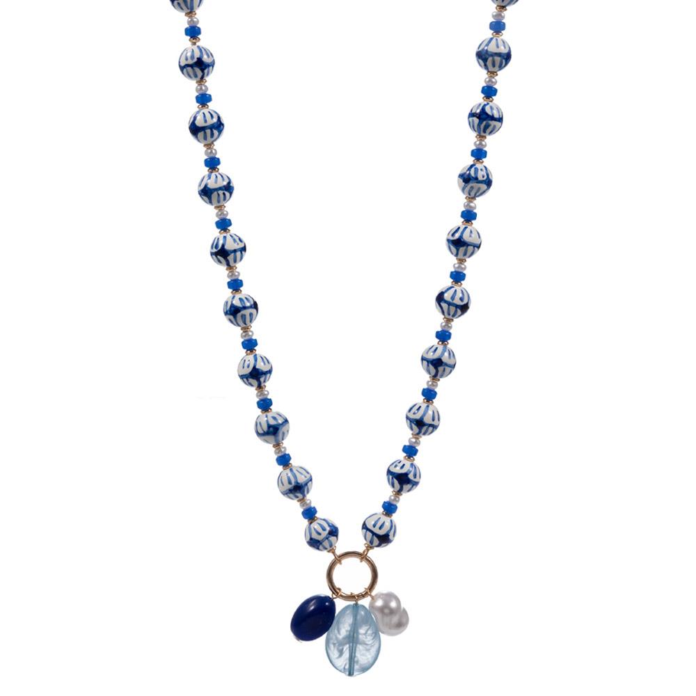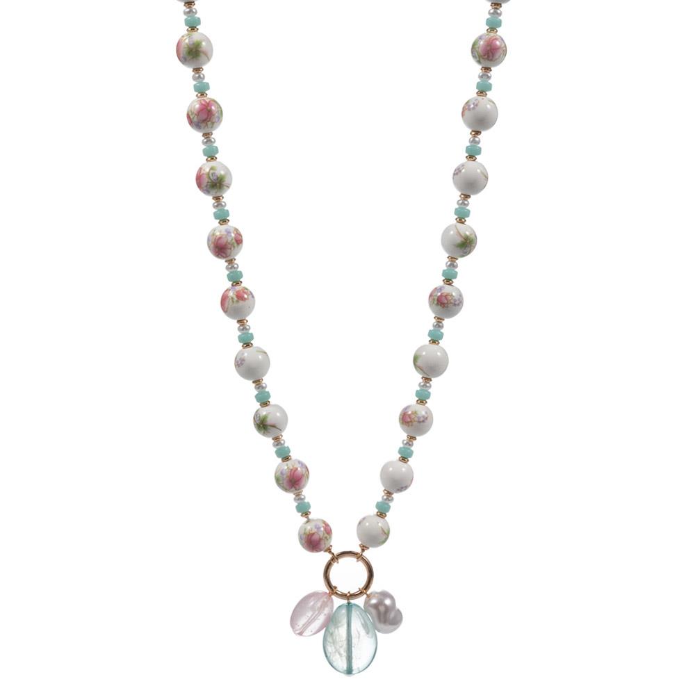 CERAMIC BEADS W/ PEARL AND RESIN BEADS CHARMS NECKLACE