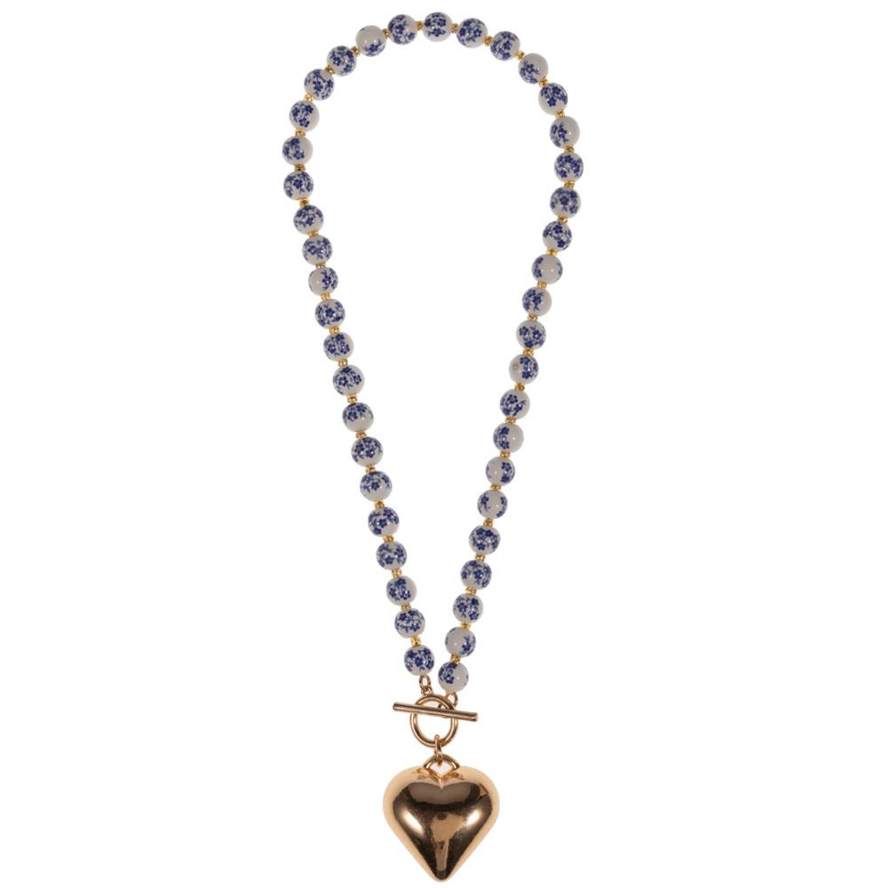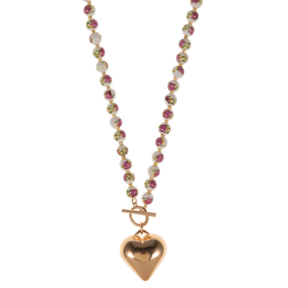 PUFFY HEART WITH CERAMIC BEAD FRONT TOGGLE SHORT NECKLACE