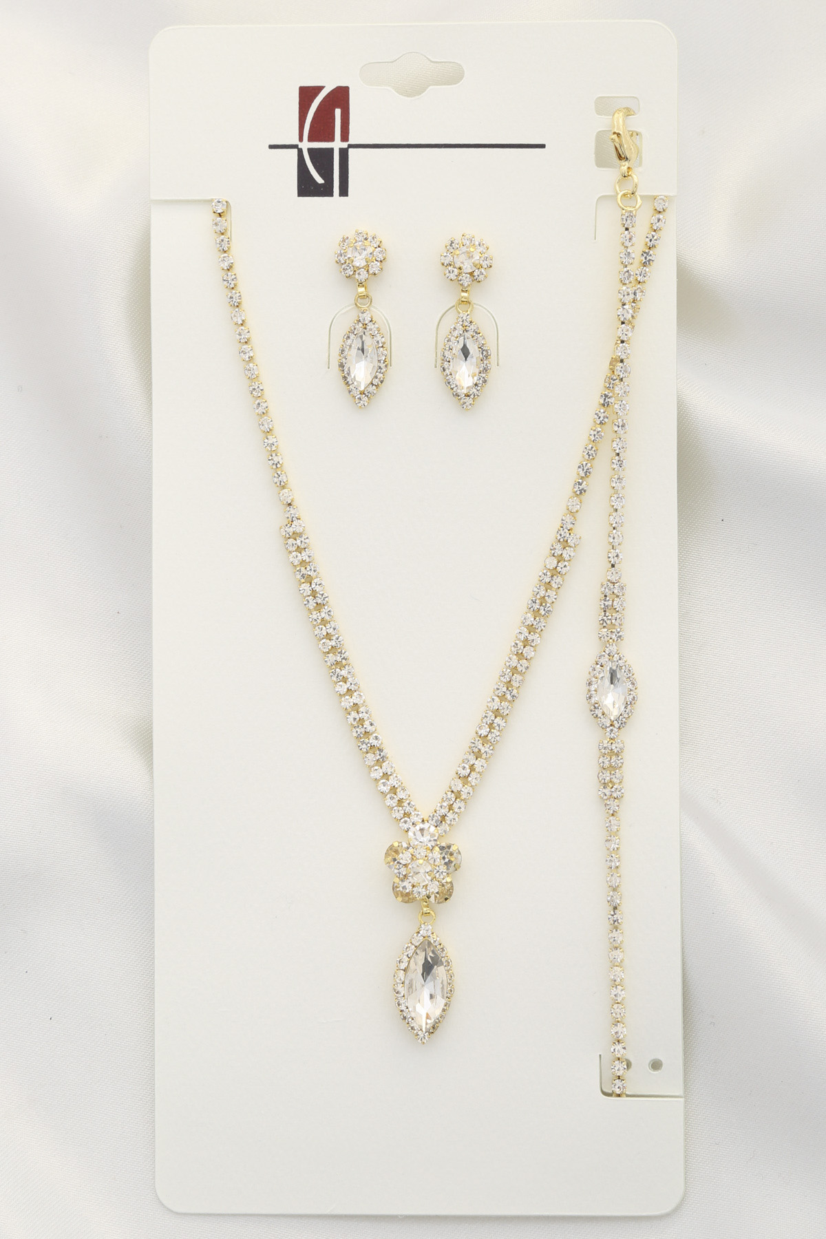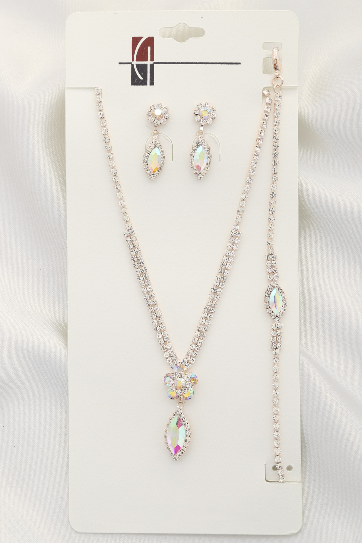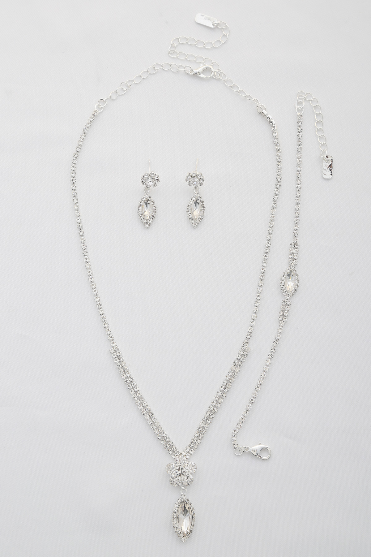 TEARDROP RHINESTONE NECKLACE EARRING BRACELET SET