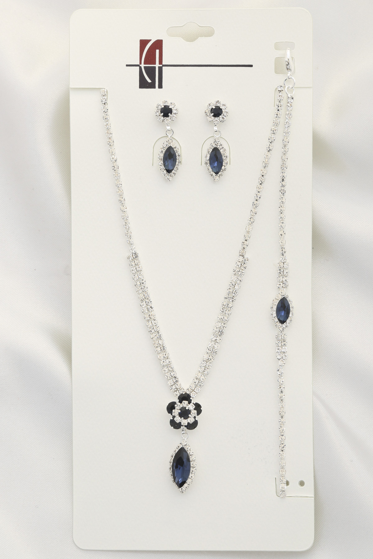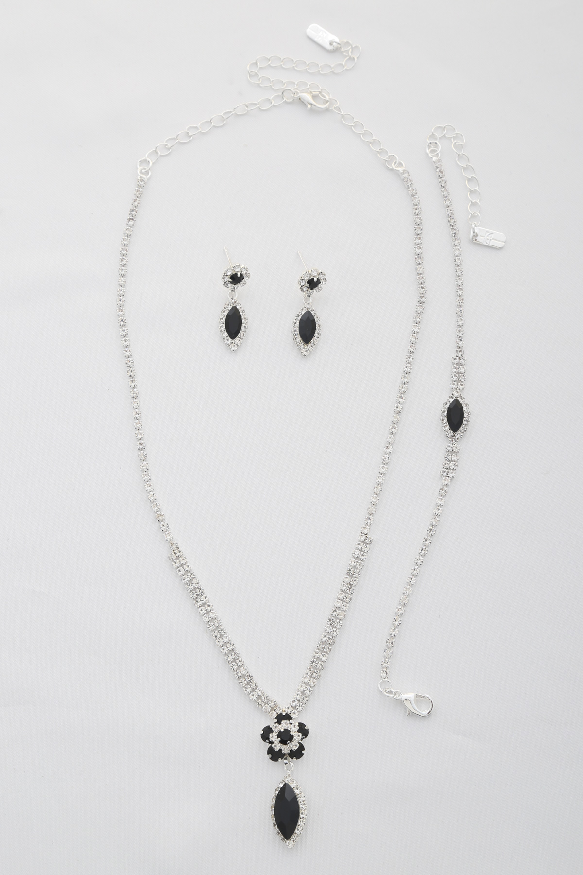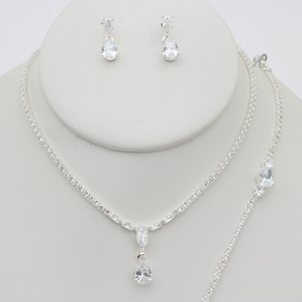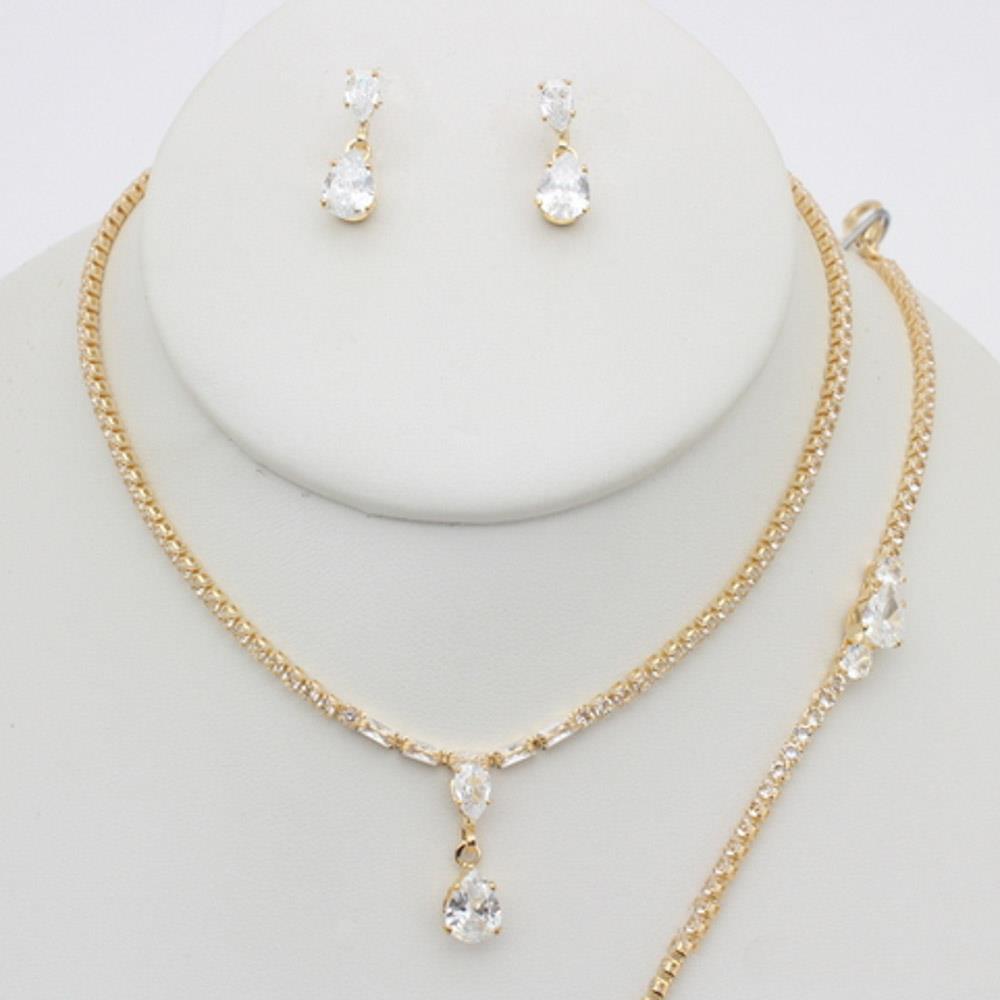 TEARDROP RHINESTONE NECKLACE EARRING BRACELET SET