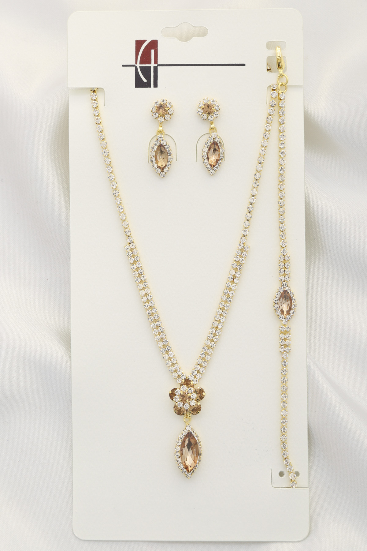 CRYSTAL STONE RHINESTONE NECKLACE EARRING SET