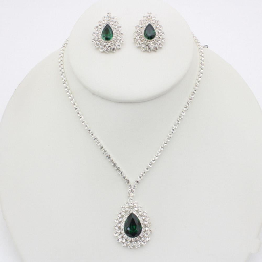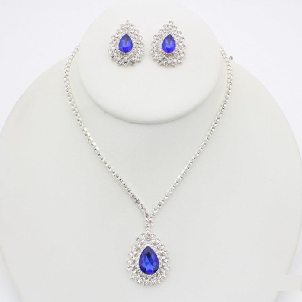 RHINESTONE TEARDROP NECKLACE EARRING SET