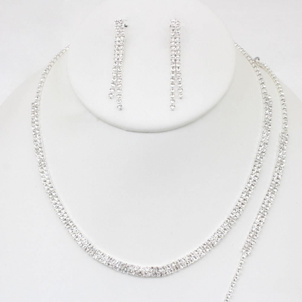 BASIC CRYSTAL RHINESTONE NECKLACE EARRING SET