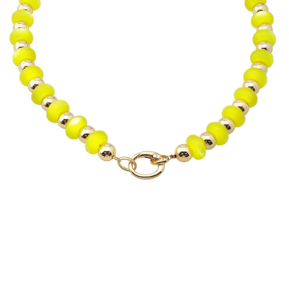 COLOR TRANSPARENT RESIN METAL BEAD NECKLACE