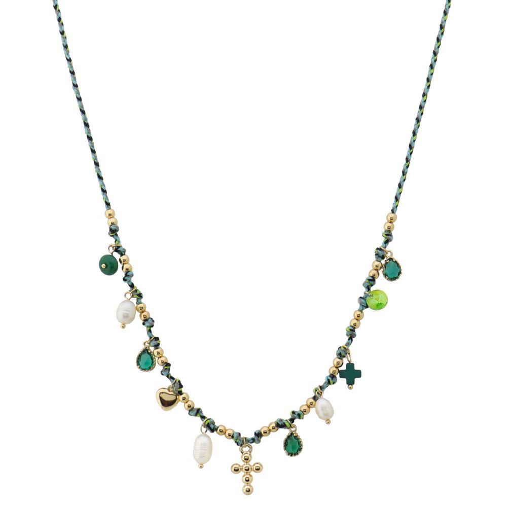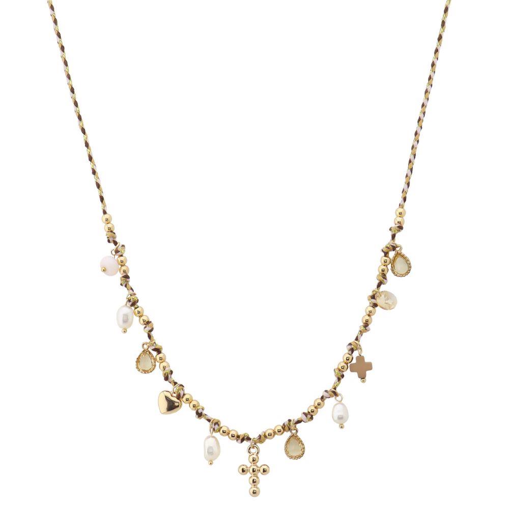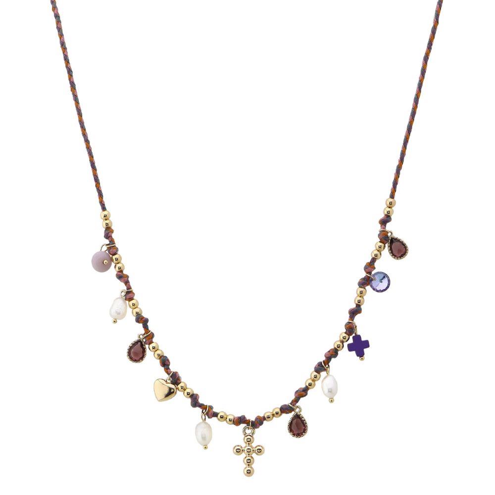 CROSS HEART MULTI CHARM BEADED NECKLACE