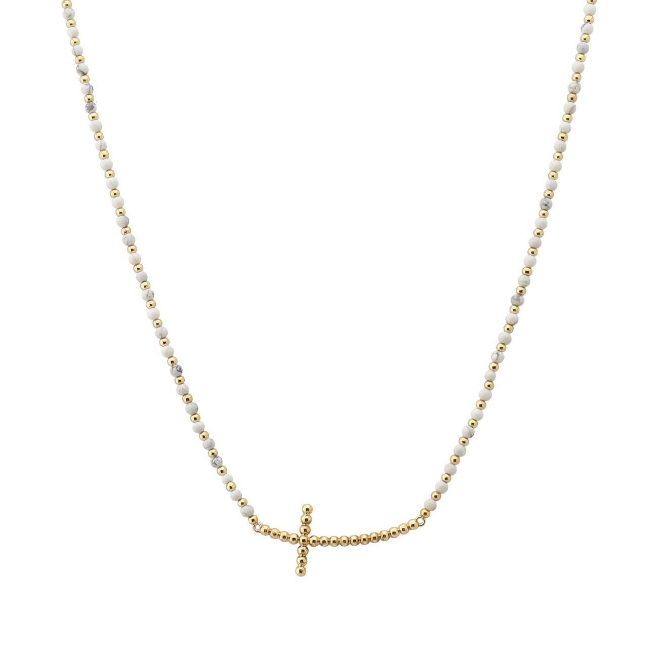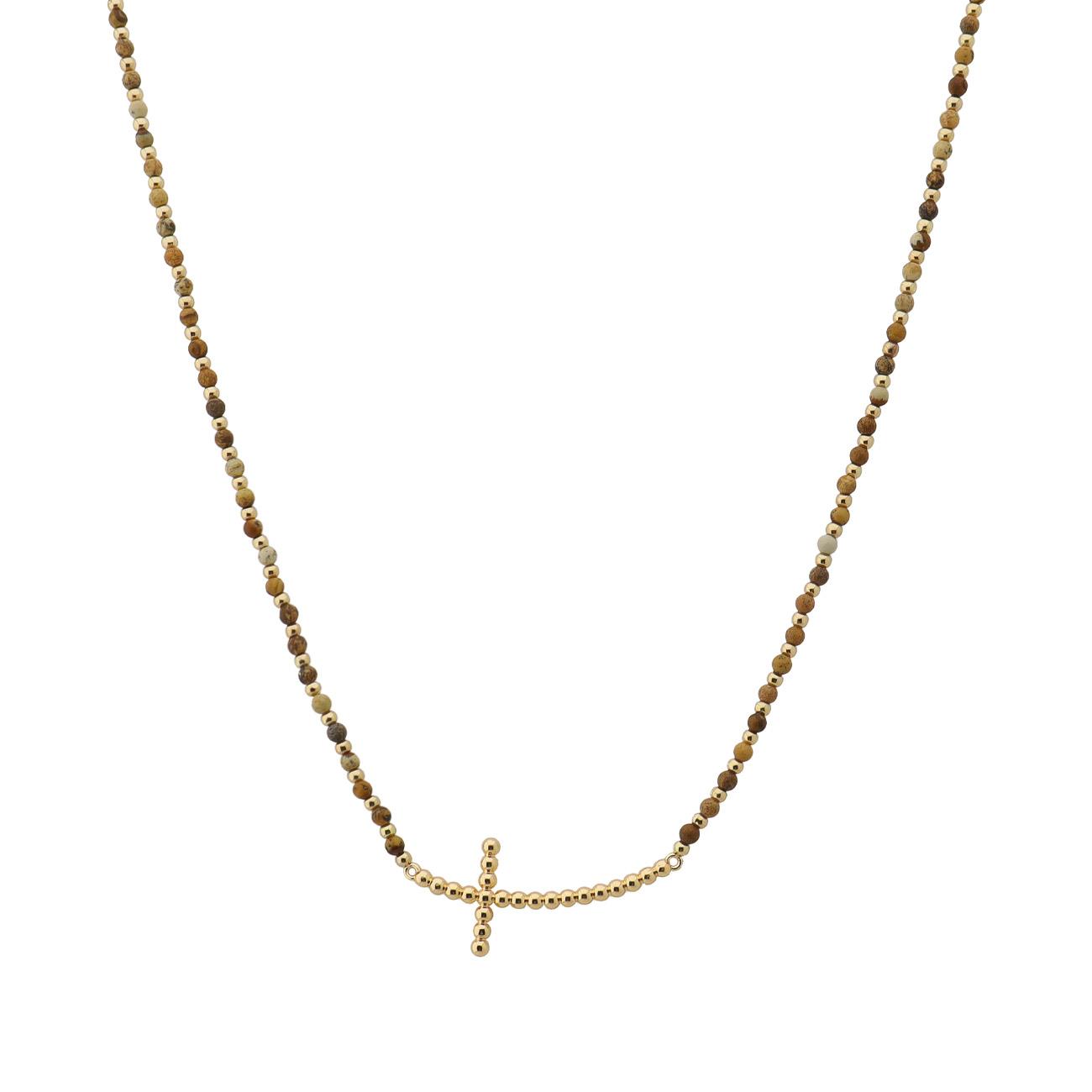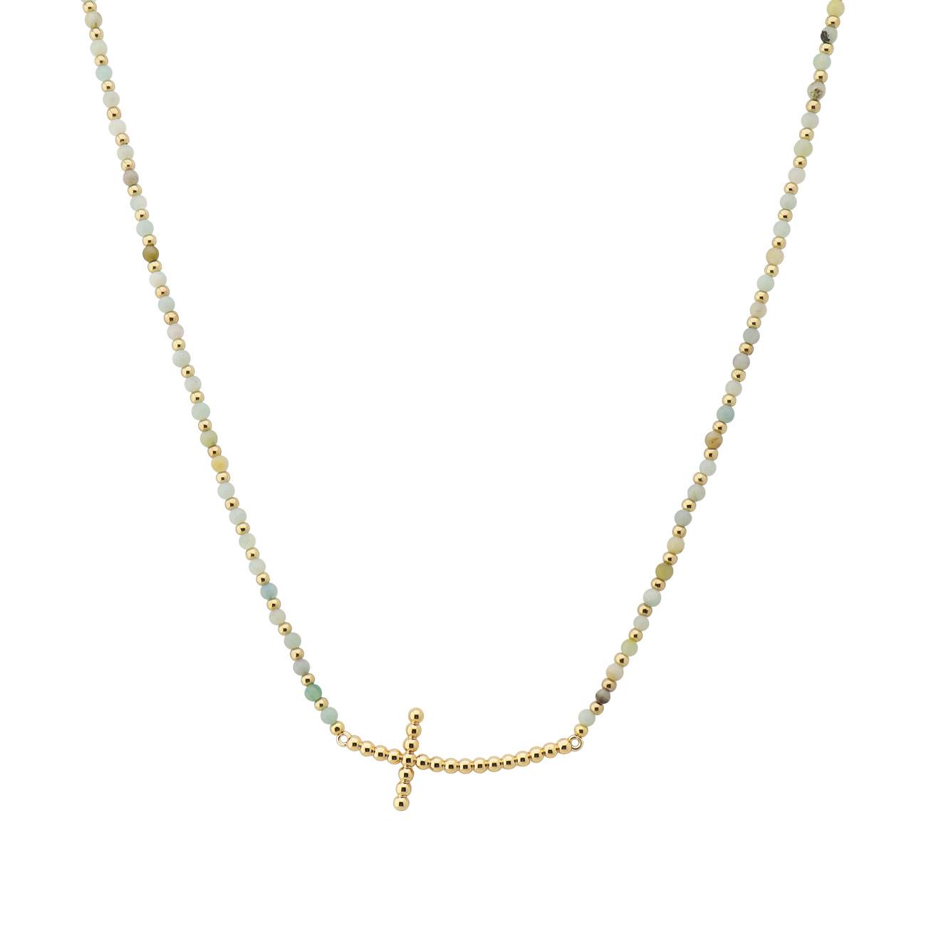 SLANTED CROSS DAINTY BEAD NECKLACE