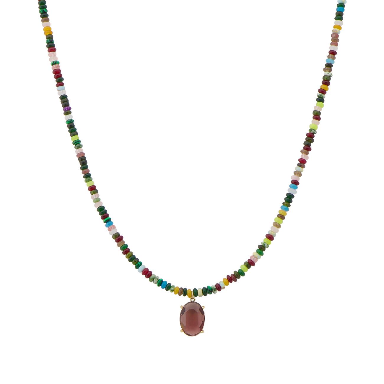 OVAL STONE PENDANT BEADED LAYERED NECKLACE