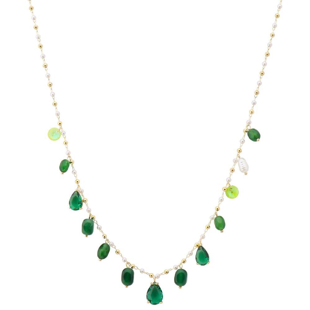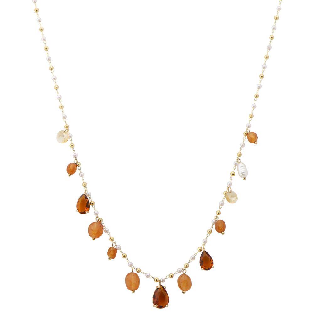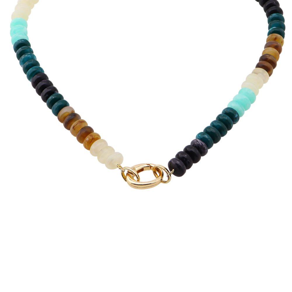 NATURAL STONE METAL BEAD MIX NECKLACE