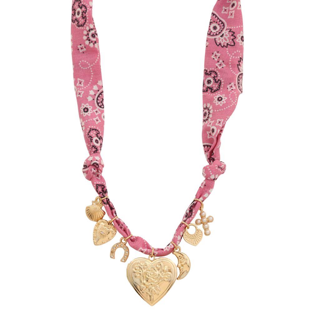 HEART LOCKET MULTI CHARM FABRIC NECKLACE