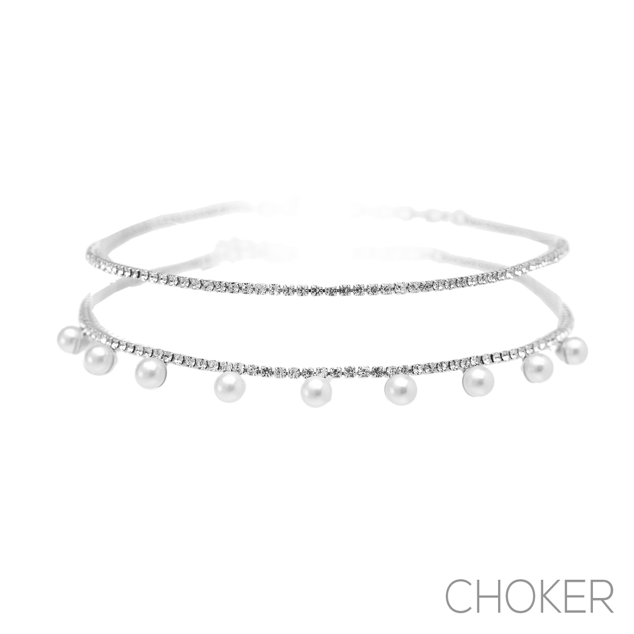 CUBIC ZIRCONIA 2 CHOKET COLLAR NECKLACE