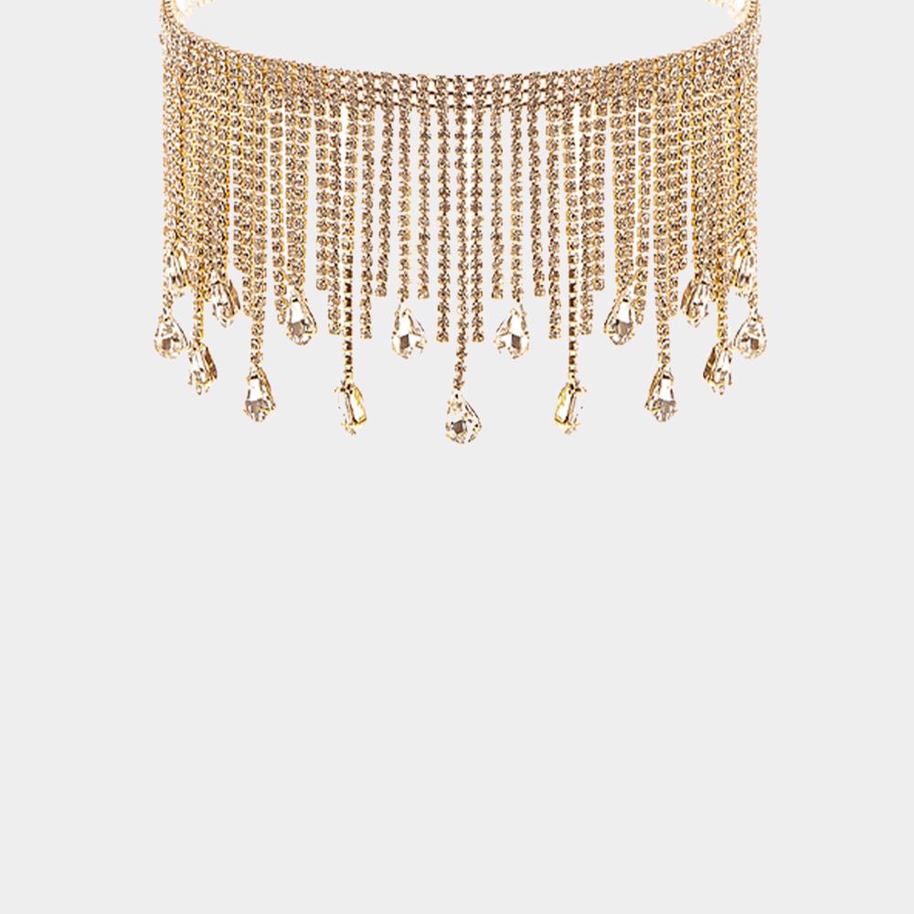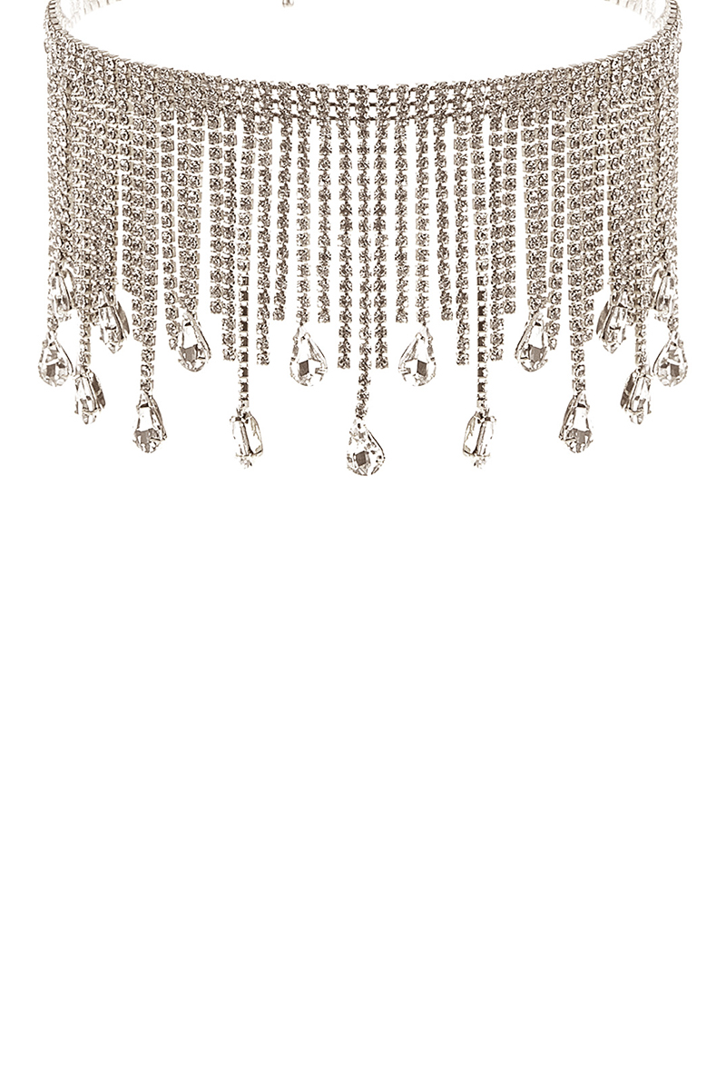 RHINESTONE FRINGE TEARDROP CHOKER NECKLACE