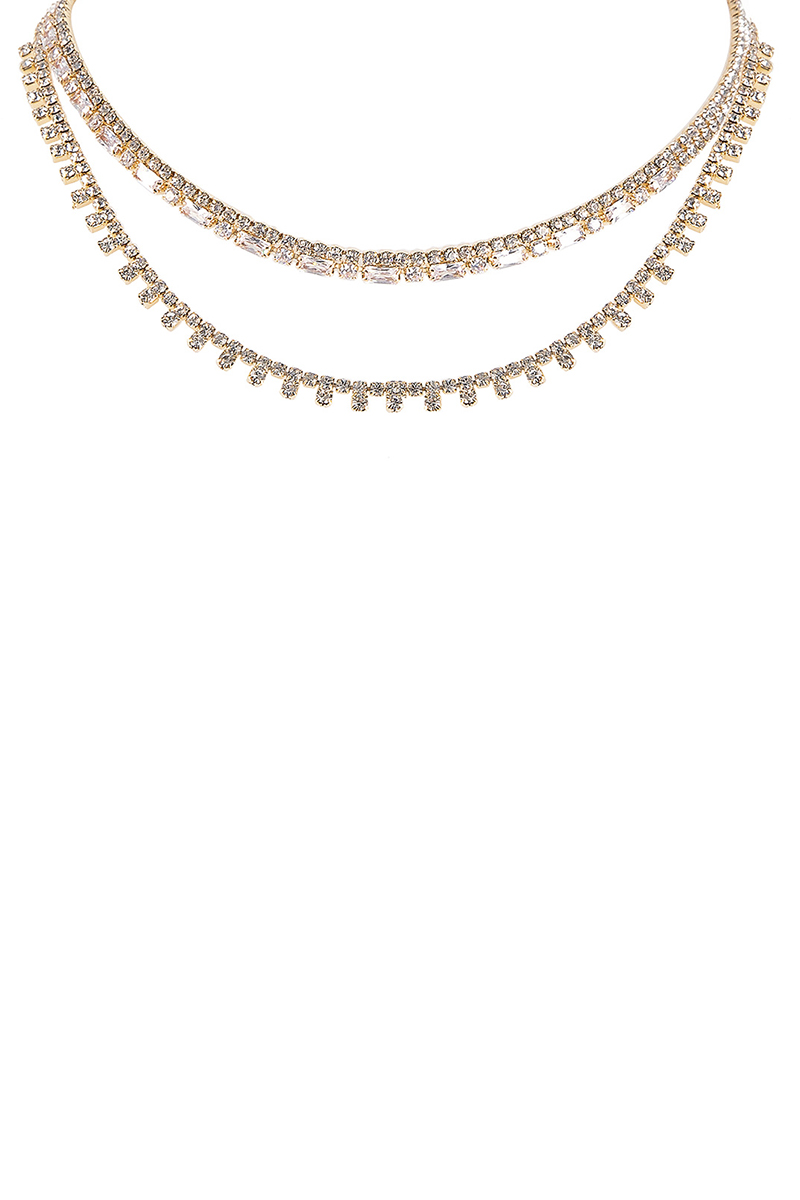 RHINESTONE 2 LAYERED CHOKER NECKLACE