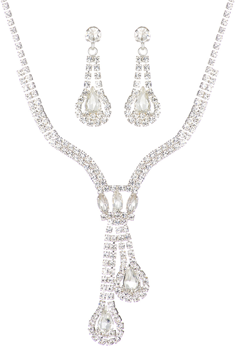 RHINESTONE CLASSIC DROP NECKLACE EARRING SET