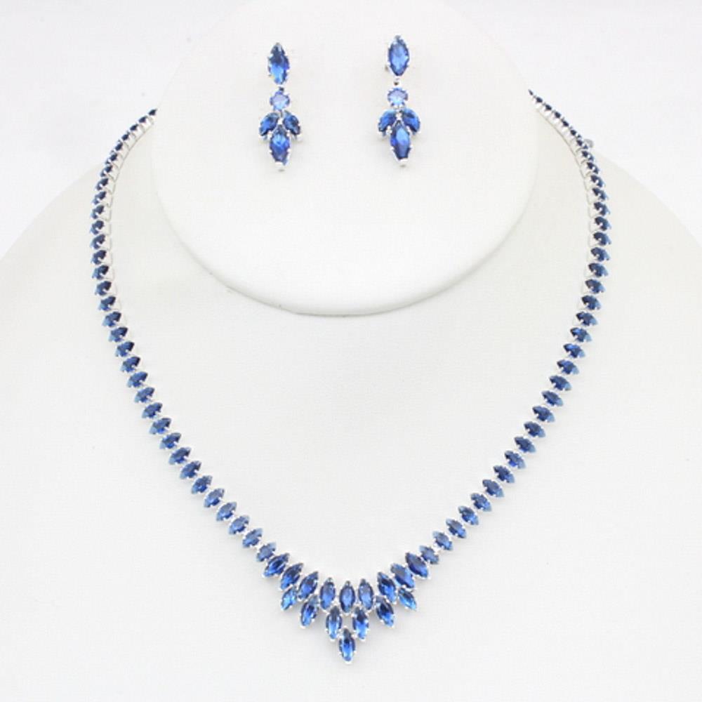 CZ MARQUISE CUT RHINESTONE CLUSTER V-SHAPE NECKLACE AND DROP EARRING SET