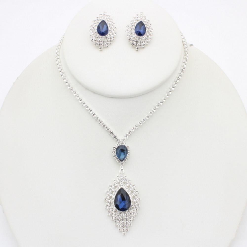 RHINESTONE TEARDROP NECKLACE EARRING SET