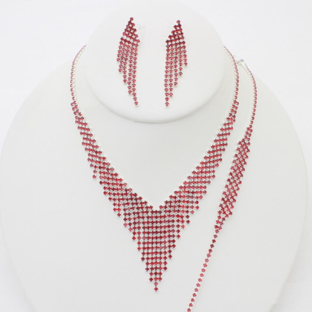 RHINESTONE V FRINGE NECKLACE EARRING BRACELET SET