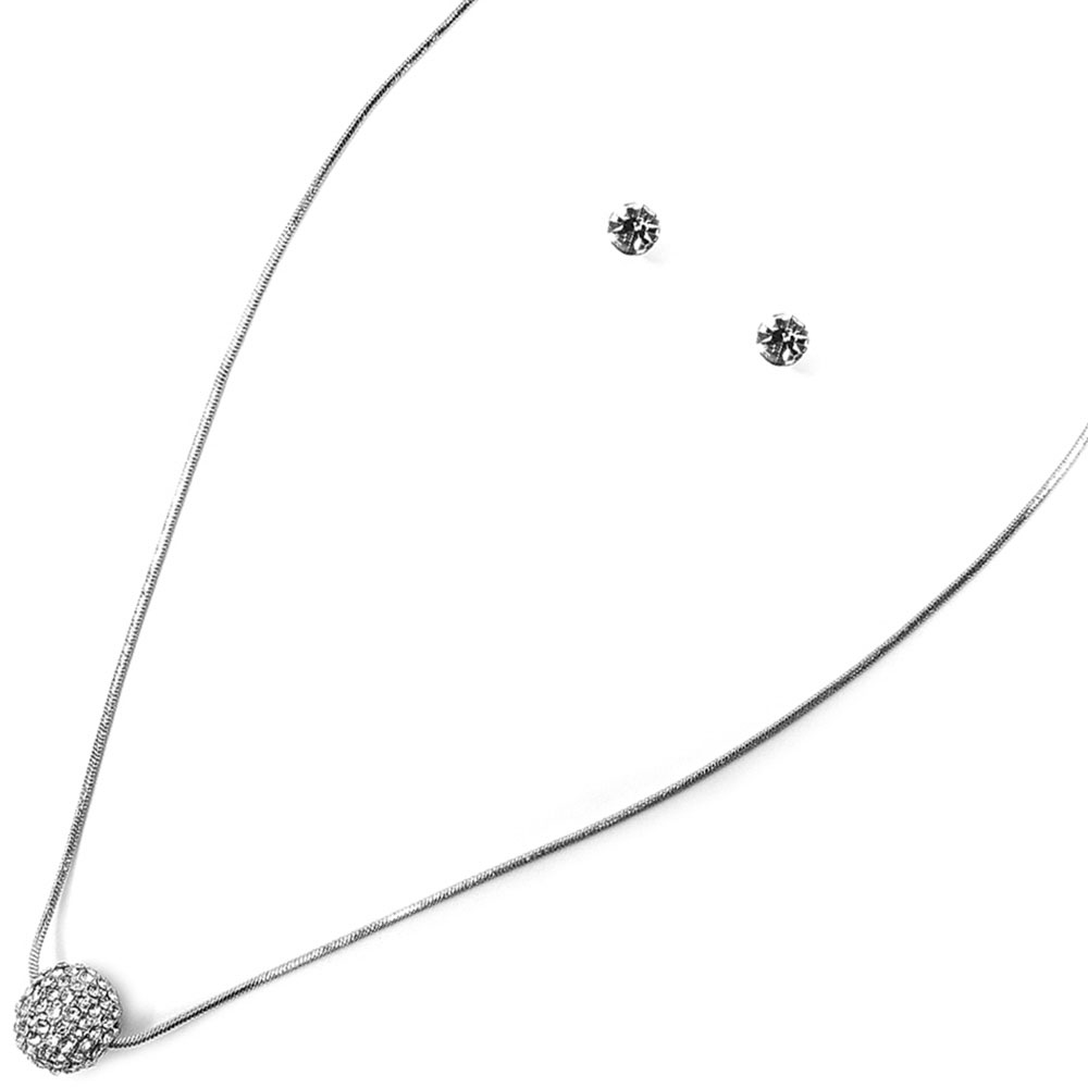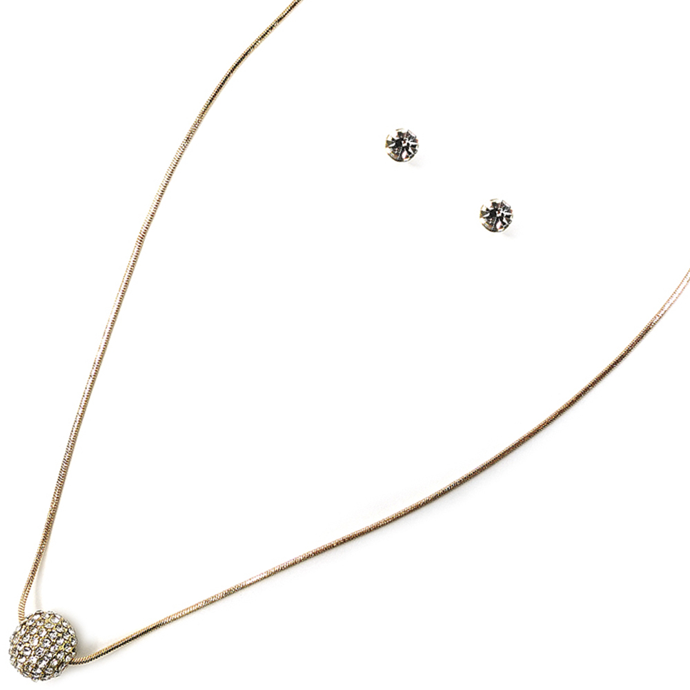 RHINESTONE BALL PENDANT NECKLACE EARRING SET